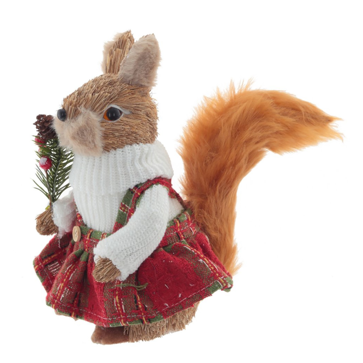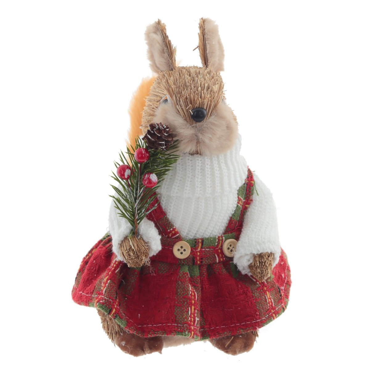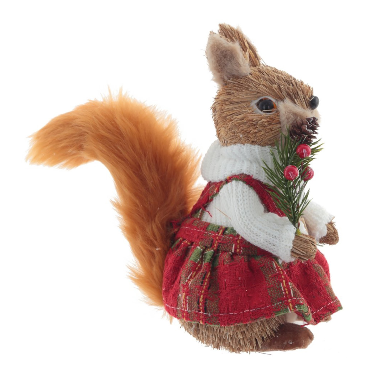 Декоративная новогодня фигурка из соломы. Белочка с рыжим пушистым хвостом, в ярком костюмчике, с еловой веточкой в лапке. Станет прекрасным дополнением к новогоднему подарку.
