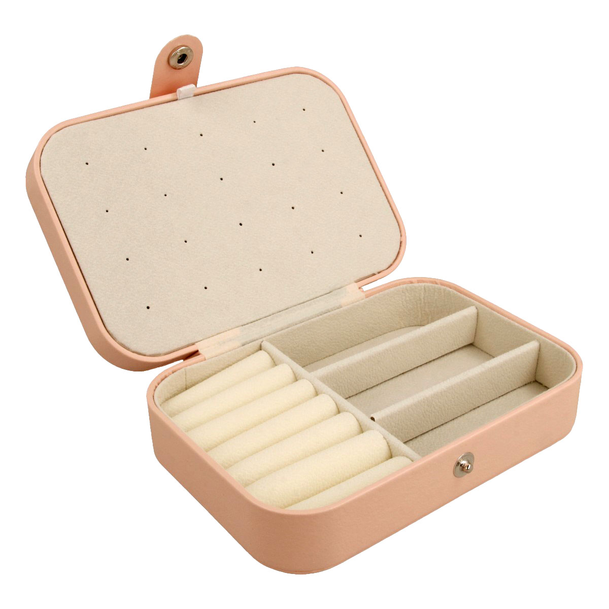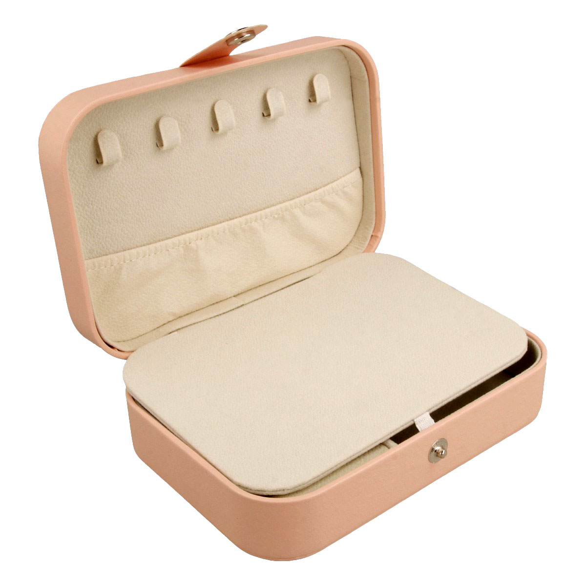 Шкатулка для украшений состоит из одного отделения с множеством секций. Отделка внутренней поверхности бархатистой тканью предохраняет ювелирные изделия от царапин. На внутренней стороне откидной крышки имеется кармашек на резинке и крючки.
