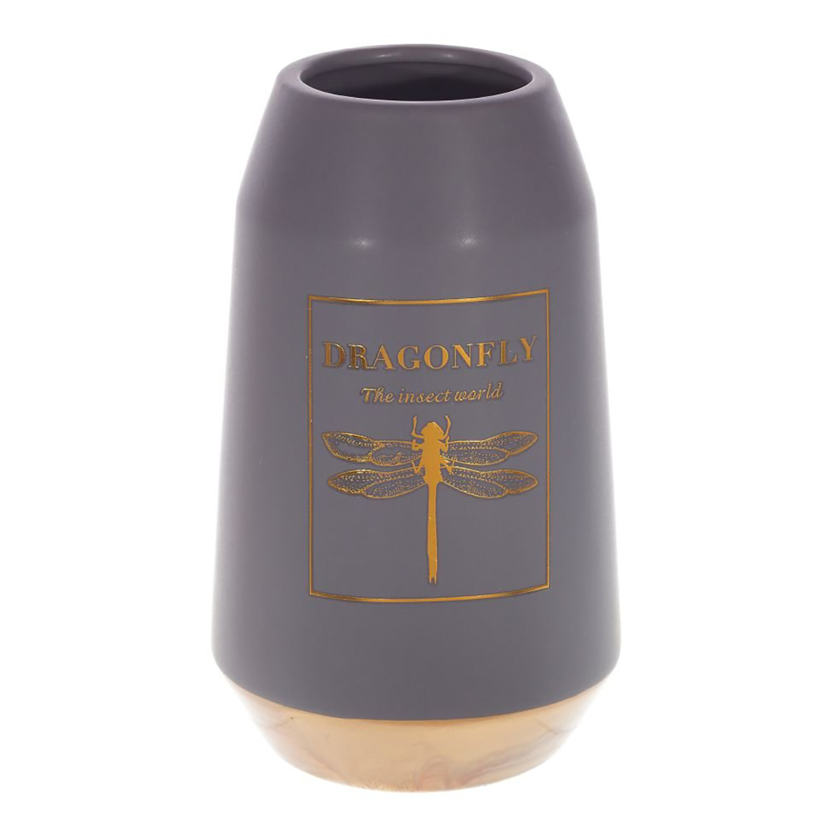 Керамическая ваза декорирована рисунком и надписями в золотом цвете. Станет прекрасным декоративным элементом в Вашем доме. Цвет - серый. Диаметр горлышка: 7 см. Ваза для искусственных цветов и сухоцветов.