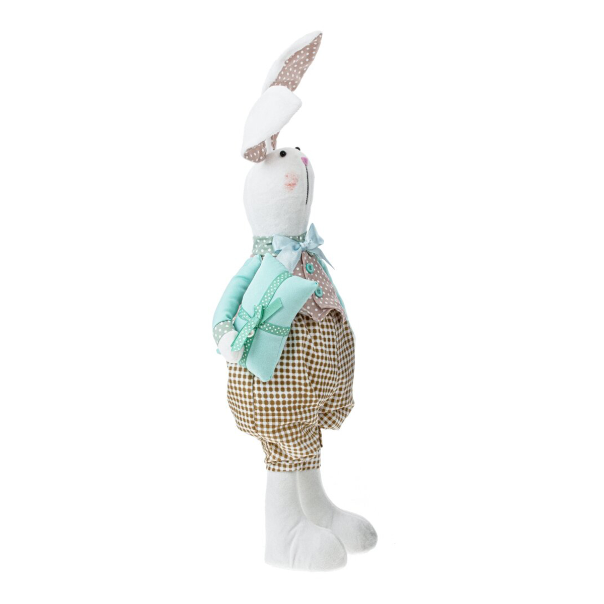 Набивная игрушка Заяц. Его текстильная одежда, тщательно подобранная по цвету и фактуре, придает изделию очарование и стиль. Такой заяц станет прекрасным элементом декора, наполняя пространство дома теплом и радостью.