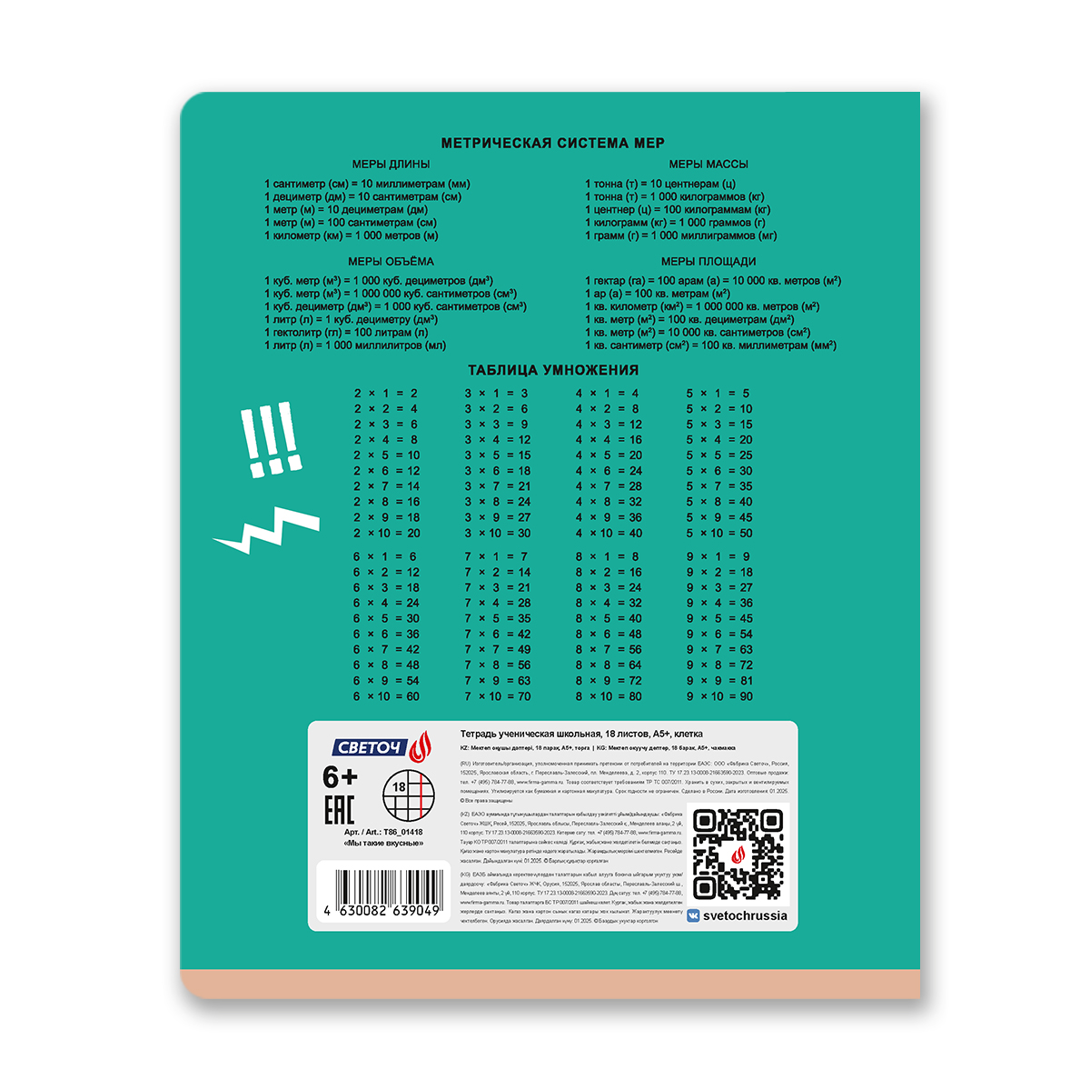 "Светоч" Т86 Тетрадь ученическая школьная, выборочный лак, A5 18 л. на скобе 65 г/кв.м , белизна 100 % клетка 01418 Мы такие вкусные