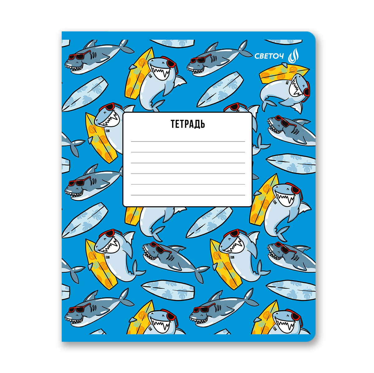 Светоч Т87 Тетрадь ученическая школьная, выборочный лак, A5 12 л. на скобе 65 г/кв.м , белизна 100 % клетка 01404 ААА! Акула! Фото 1.