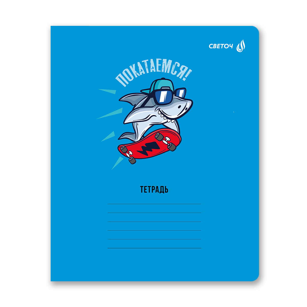 Светоч Т87 Тетрадь ученическая школьная, выборочный лак, A5 12 л. на скобе 65 г/кв.м , белизна 100 % клетка 01404 ААА! Акула! Фото 7.