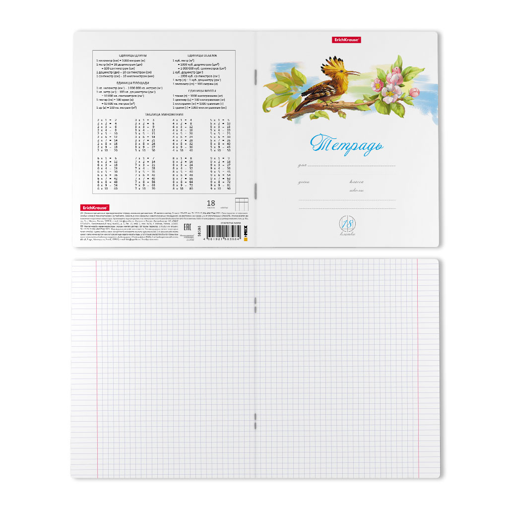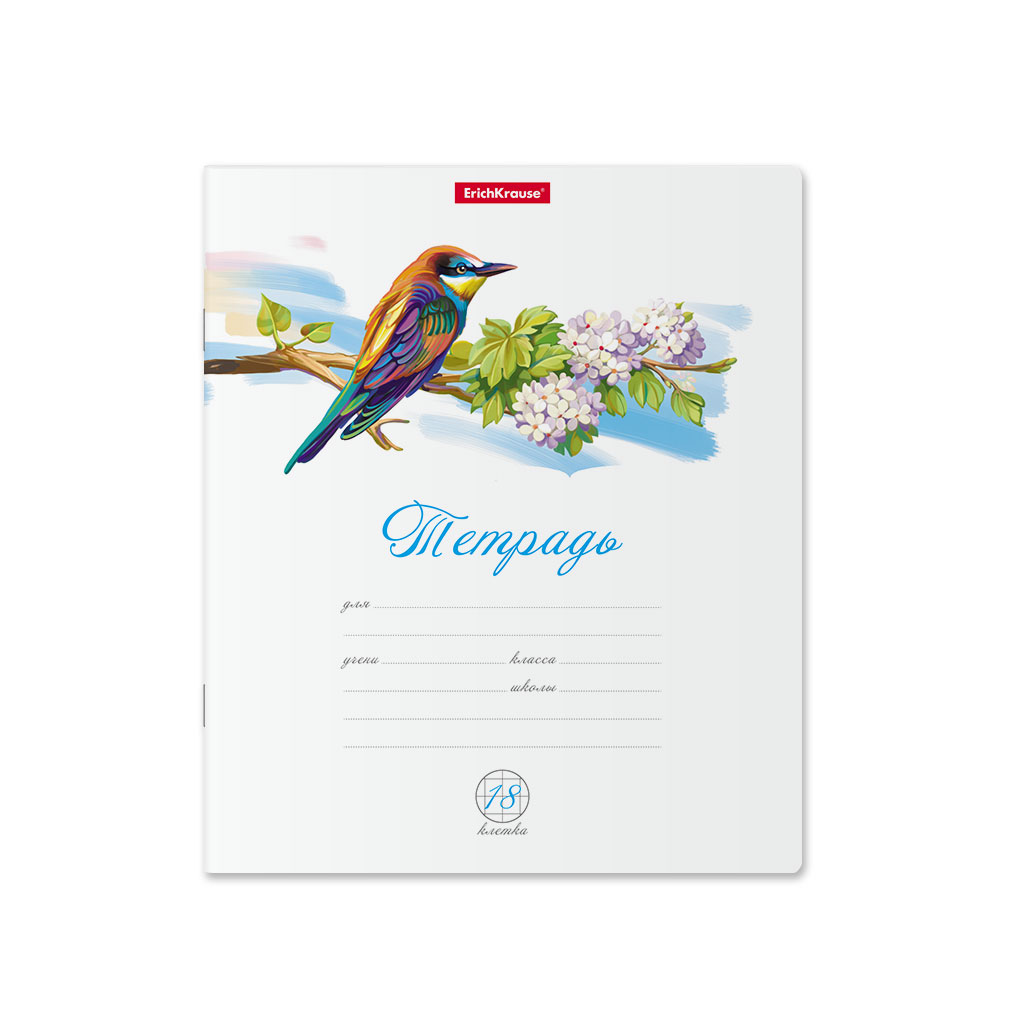 Тетрадь школьная ученическая формата А5+ [170х203 мм]. Обложка из высококачественного мелованного картона плотностью 180 г/м2. В блоке 18 листов в клетку с полями. Бумага офсетная плотностью 60 г/м2. Цвет линовки - синий. Скругленные уголки обложки и блока. Тип скрепления - скоба. Без возможности выбора дизайна.