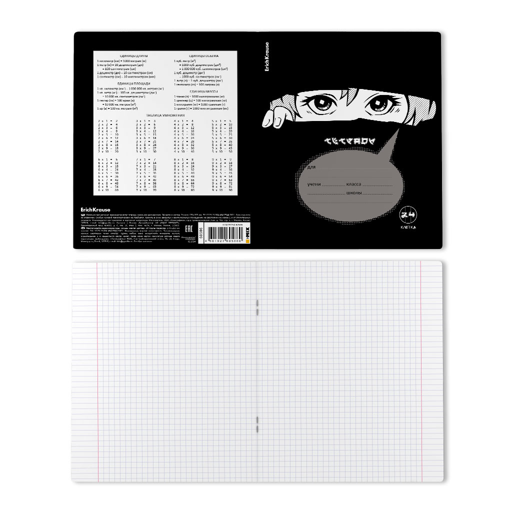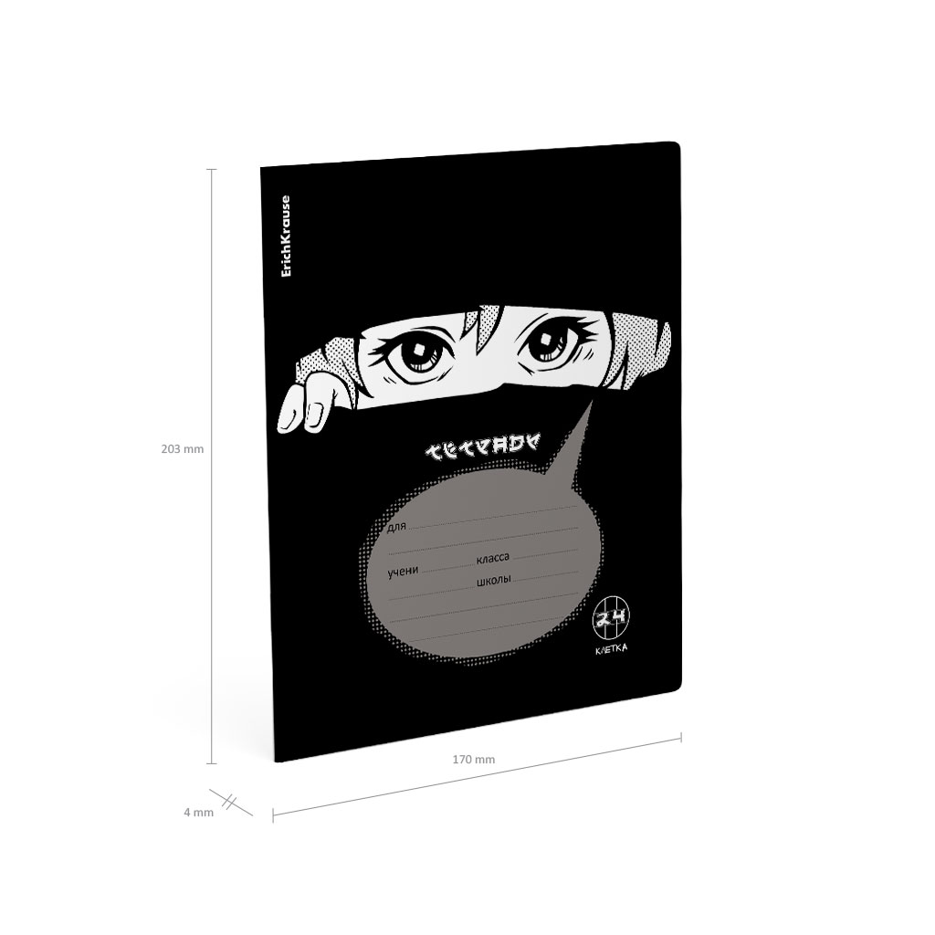 Тетрадь школьная ученическая формата А5+ [170х203 мм]. Обложка из высококачественного мелованного картона плотностью 170 г/м2. Отделка обложки - выборочный УФ-лак. В блоке 24 листа в клетку с полями. Бумага офсетная плотностью 60 г/м2. Цвет линовки - синий. Скругленные уголки обложки и блока. Тип скрепления - скоба. Без возможности выбора дизайна.
