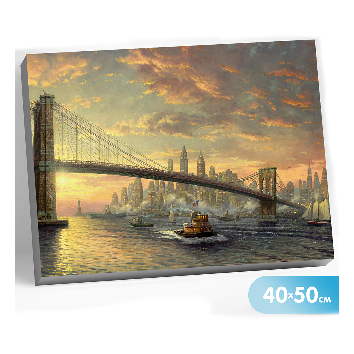 Картину с видом на нью-йоркский мост можно нарисовать на холсте акриловыми красками в технике "рисование по номерам". Создание картины по номерам не требует специальных навыков и умений. Профессиональные акриловые краски делают творческий процесс максимально комфортным и результат качественным. Кисти двух размеров помогают аккуратно и качественно прорабатывать все сегменты изображения.