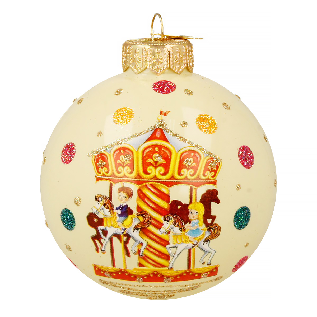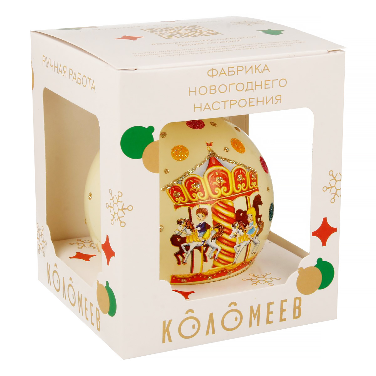 Елочная игрушка шар "Весёлая карусель", изготовленная из качественного стекла, станет великолепным крашением для елки. Ее яркие цвета и привлекательный дизайн делают украшение прекрасным дополнением к коллекции или замечательным подарком для близких и любимых людей. Высота игрушки – 8 см. Имеет форму шара. Елочная игрушка поможет создать праздничное настроение и добавит тепло и волшебство. Продается в подарочной упаковке. Единица продажи - одна игрушка. Дизайн украшений на фото может отличаться. Отгружается без возможности выбора цвета/дизайна.