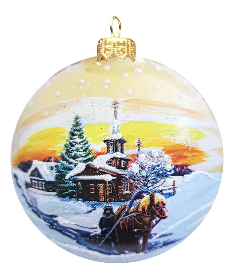 Елочная игрушка шар "Зима.Крестьянин", изготовленная из качественного стекла, станет великолепным крашением для елки. Ее яркие цвета и привлекательный дизайн делают украшение прекрасным дополнением к коллекции или замечательным подарком для близких и любимых людей. Высота игрушки – 8 см. Имеет форму шара. Елочная игрушка поможет создать праздничное настроение и добавит тепло и волшебство. Продается в подарочной упаковке. Единица продажи - одна игрушка. Дизайн украшений на фото может отличаться. Отгружается без возможности выбора цвета/дизайна.