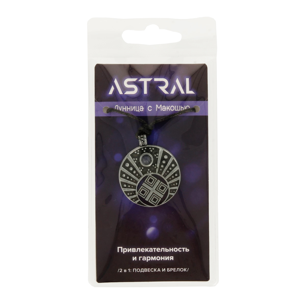 "Лунница с Макошью" - два мощных оберега, которые усиливают друг друга. Лунница дарует здоровье и привлекательность. Макошь способствует семейному счастью, благополучию и рождению здоровых детей. Аметист – камень гармонии и миролюбия. Он помогает избегать скандалов и ссор, находить общий язык с людьми. Размер амулета: 35х42 мм.