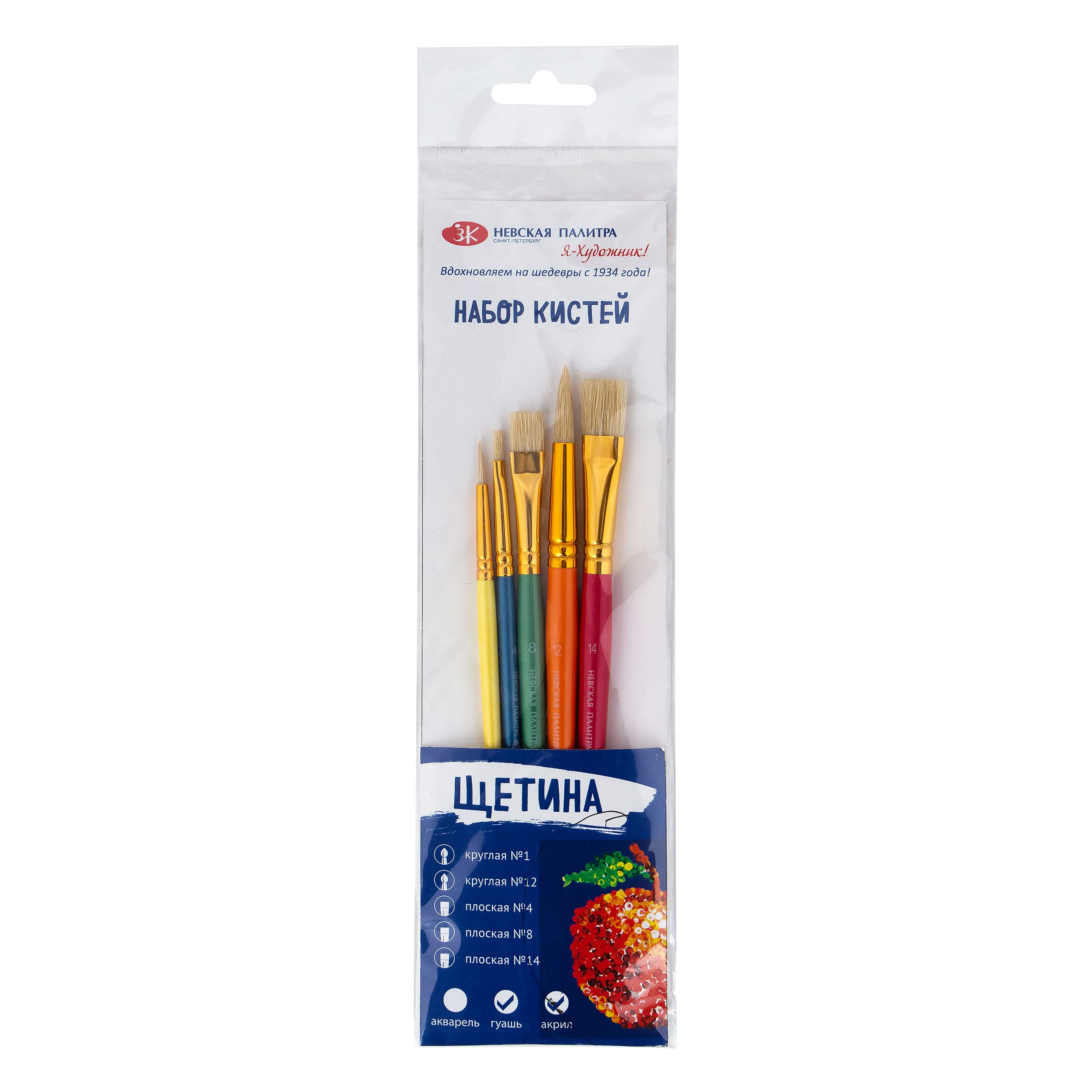 Набор кистей Я - Художник!, щетина. 5 шт в наборе. Ручки разного цвета. Состав набора : - Щетина, круглая №1 - Щетина, круглая №12 - Щетина, плоская №4 - Щетина, плоская №8 - Щетина, плоская №14 Срок годности не ограничен