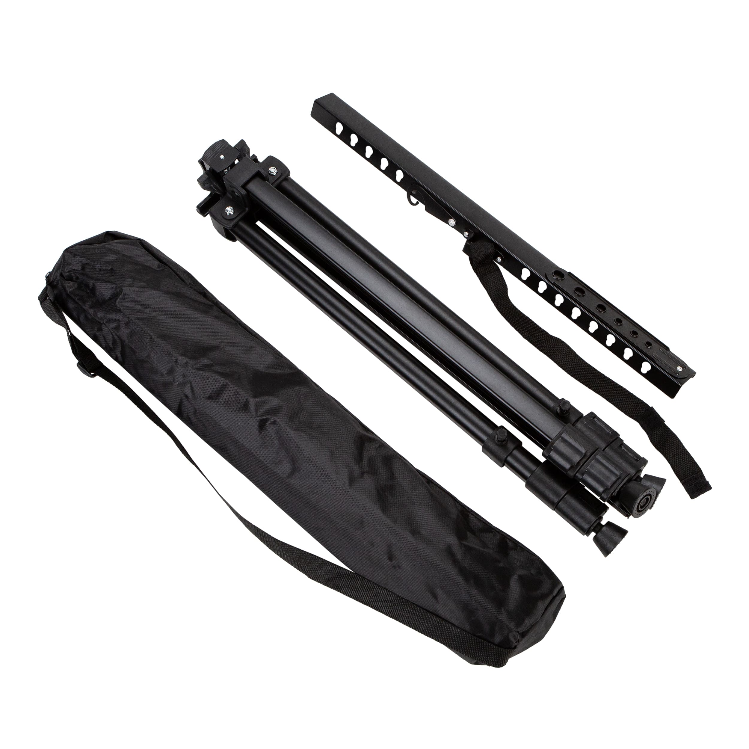 Мольберт-тренога изготовлен из аллюминия. Поставляется в комплекте с сумкой [чехлом]. Размер 46х33х54 см, высота 125 см, держит холст до 83 см.