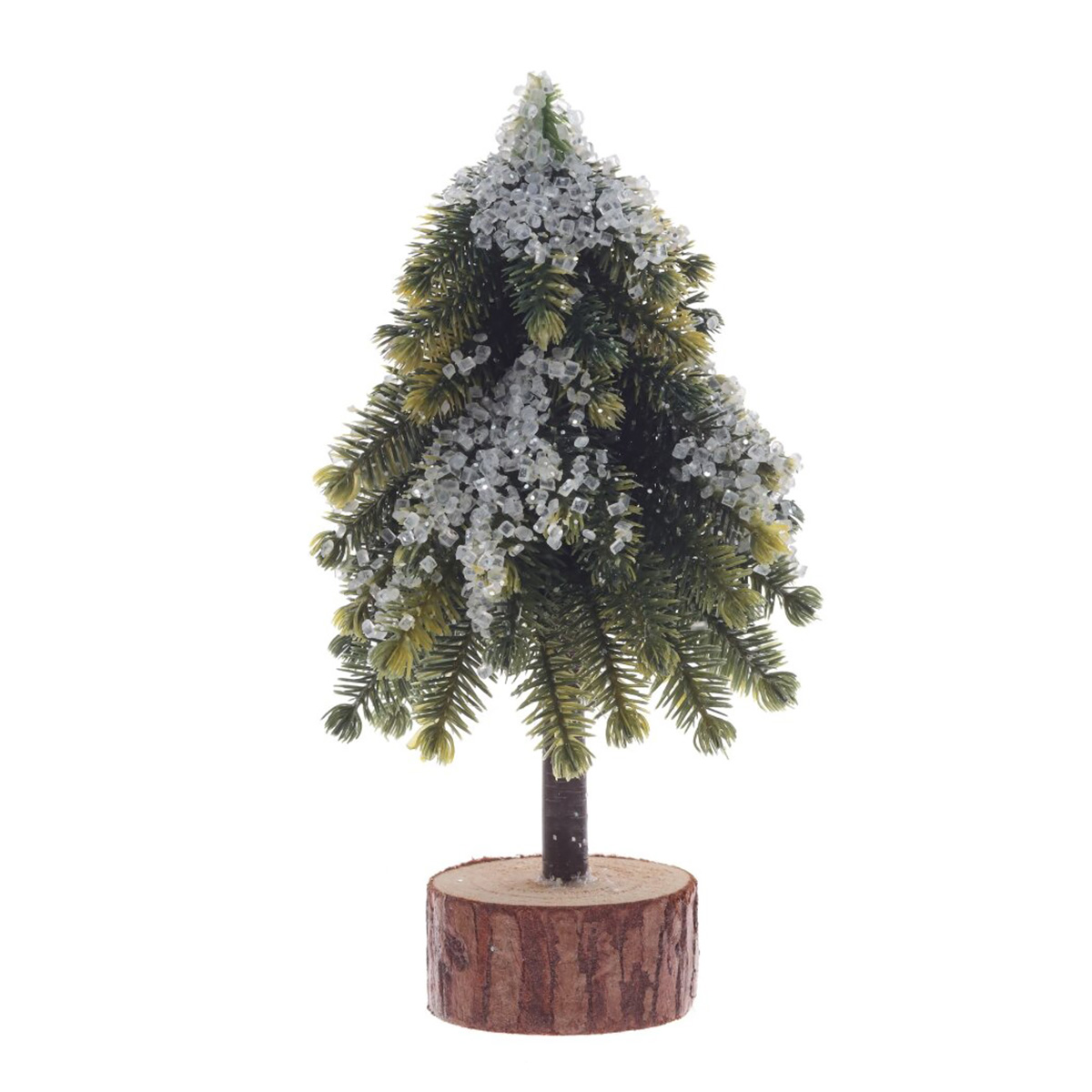 Маленькая декоративная елочка на натуральном спиле - это очаровательное украшение, выполненное из полимерных веточек, похожих на натуральные. Она выглядит как настоящее деревце, украшенное искусственными льдинками, что придает ей особую сказочность. Это прекрасное дополнение к новогоднему декору, которое создаст атмосферу праздника и уюта в доме.