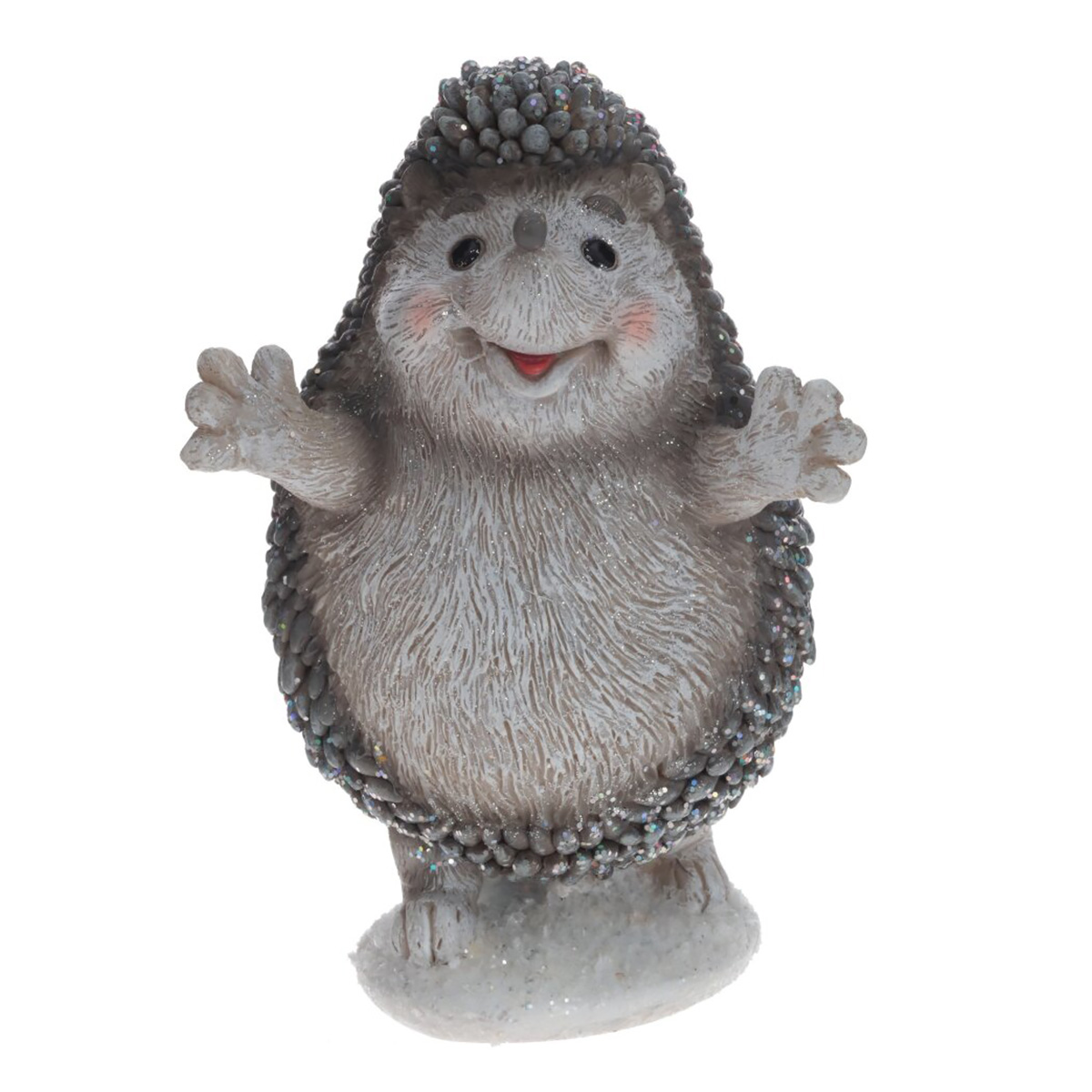 Фигурка декоративная "Ёжик" - это очаровательный новогодний сувенир, который добавит уюта и волшебства в ваш дом. Симпатичный ёжик в сером цвете, его колючки усыпаны блестящим серебряным глиттером, который красиво переливается на свету. Отличная детализация передает каждую черту, и фигурку хочется рассматривать снова и снова. Эта фигурка станет отличным украшением для вашего праздничного интерьера. Представлена в двух вариантах. Без возможности выбора дизайна.