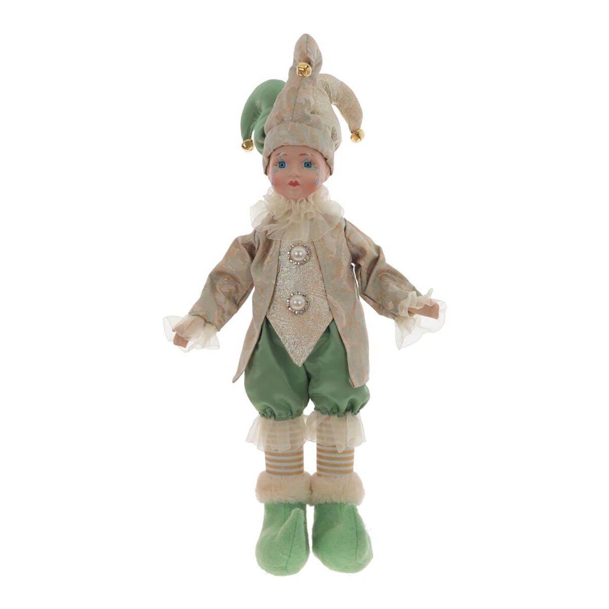 Игрушка набивная с музыкальным и движущимся механизмом "Клоун" — это восхитительная декоративная кукла, которая станет незаменимым акцентом на любом празднике. Лицо и кисти рук выполнены из фарфора, что придаёт ей неповторимую элегантность и утонченность. Костюм клоуна выполнен в роскошных зелено-золотых оттенках, которые эффектно переливаются на свету. Шутовской колпак придает образу веселья. Благодаря проволоке, встроенной в руки, клоун может делать забавные жесты, что добавляет игривости в атмосферу праздника. На спине куклы расположен заводной ключик, который активирует новогоднюю мелодию, под которую клоун плавно кивает головой. Эта яркая игрушка не только станет прекрасным подарком для близких, но и замечательным элементом интерьера.