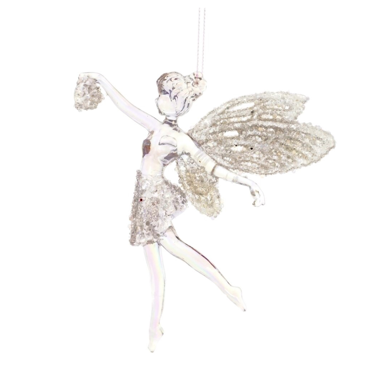 Декоративное подвесное изделие "Фея" — это очаровательное новогоднее украшение из полиакрила. Изящная девочка-фея с аккуратными блестящими крылышками воплощает легкость и волшебство. Полупрозрачный блеск материала делает её идеальным акцентом для создания праздничной атмосферы в вашем интерьере.