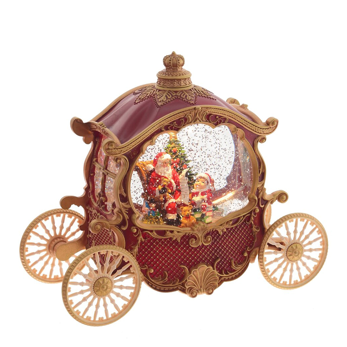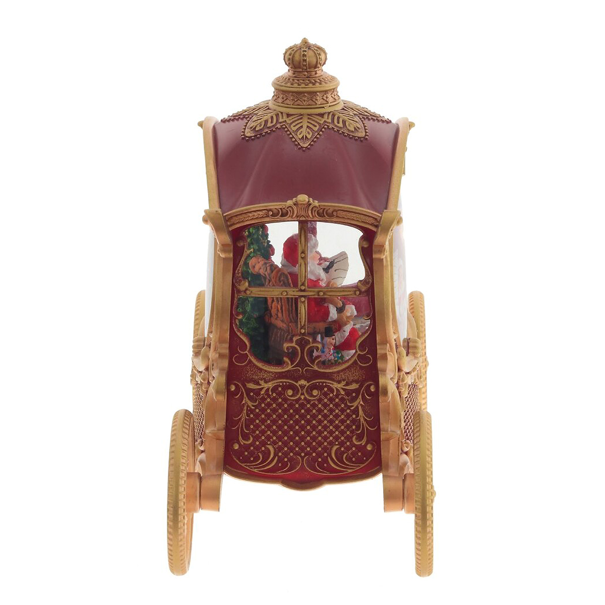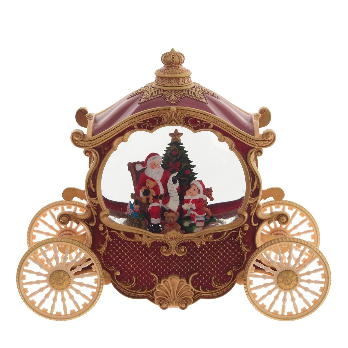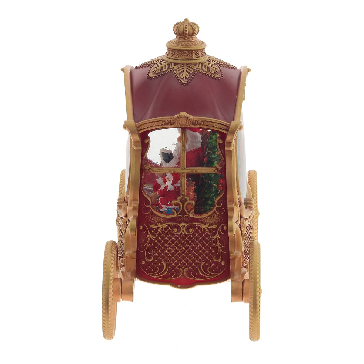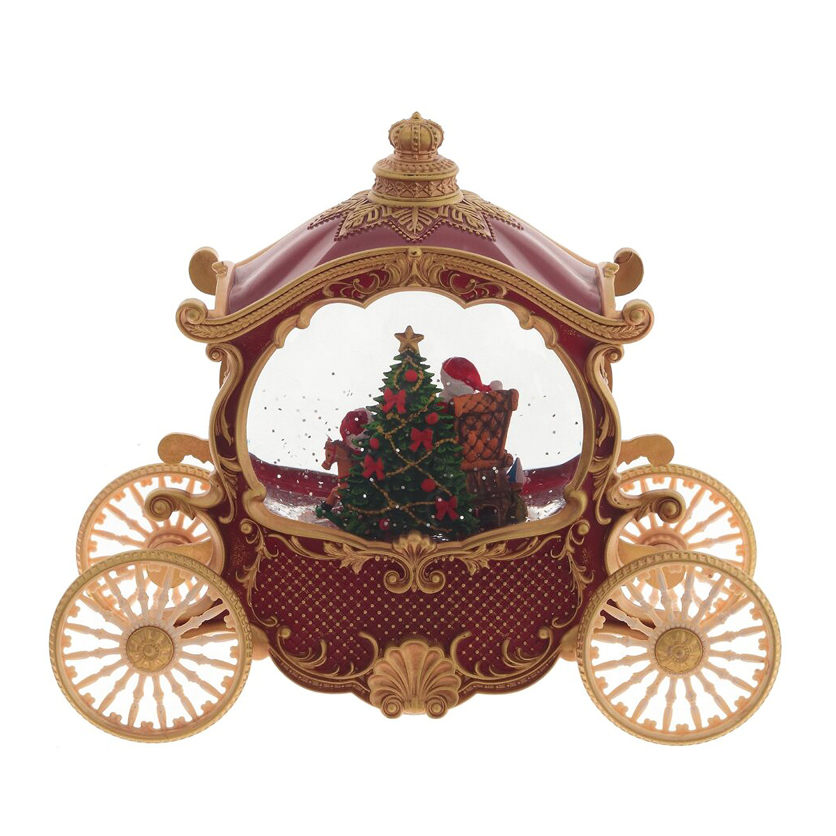 Деккоративная карета с дедом Морозом придаст вашему новогоднему интерьеру сказочной атмосферы. Особенно эффектно в вечернее время, так как при включении работает подсветка и легкая вьюга закручивает блестки в глицериновой воде создавая праздничное настроение. Работает от трех батареек типа АА [в комплект не входят]. Обратите внимание на температурный режим отгрузки выше 0°С