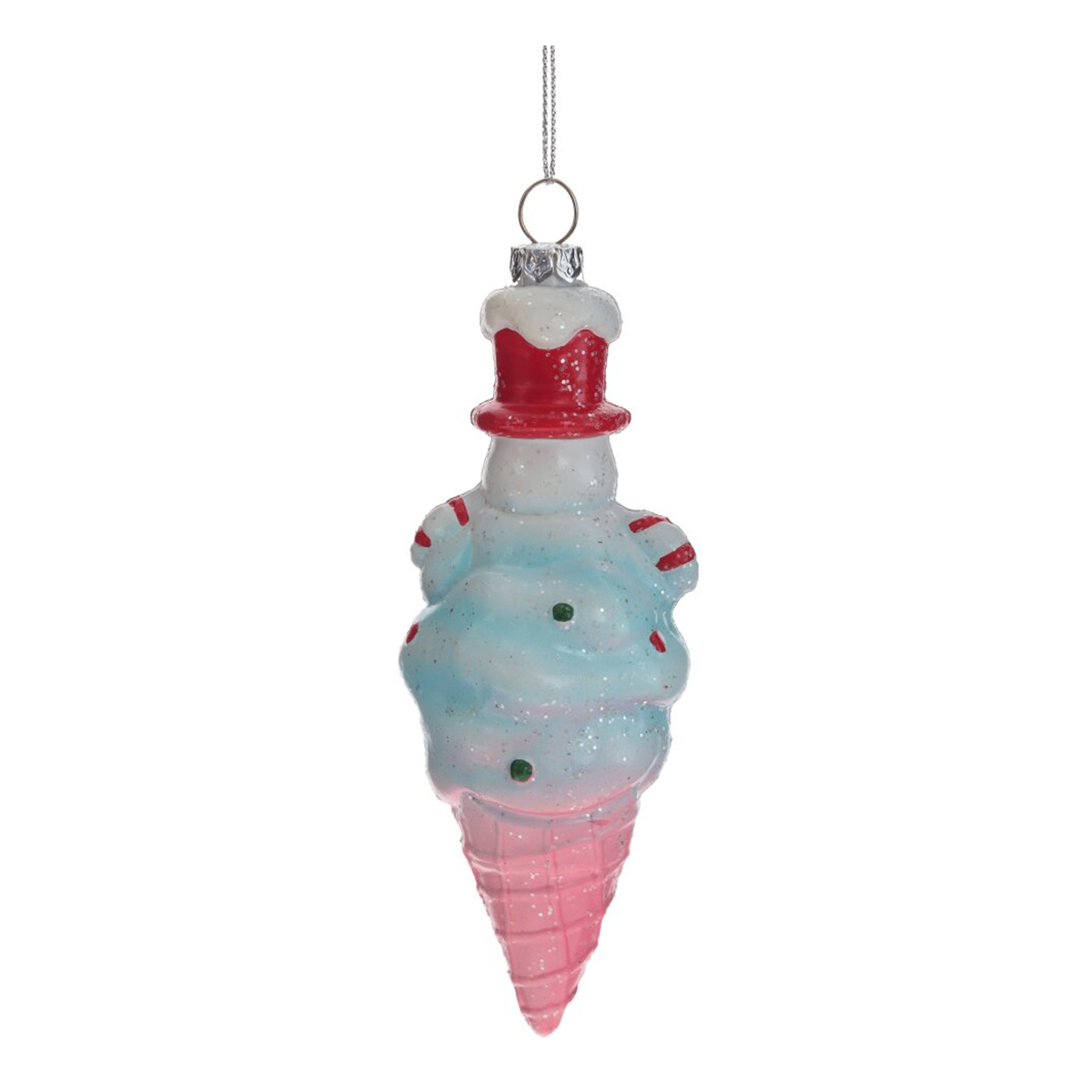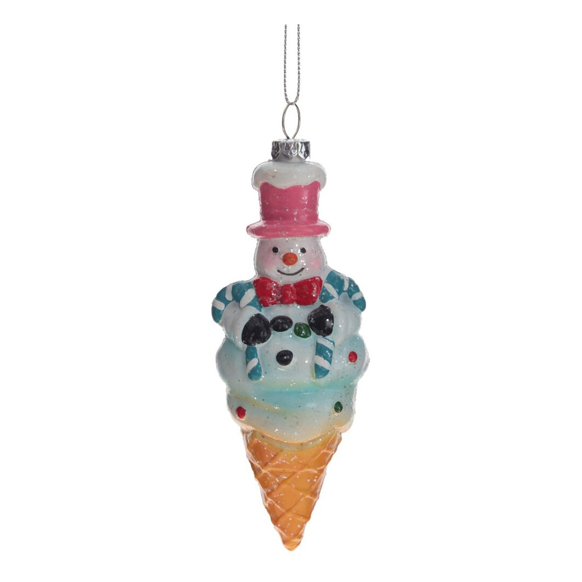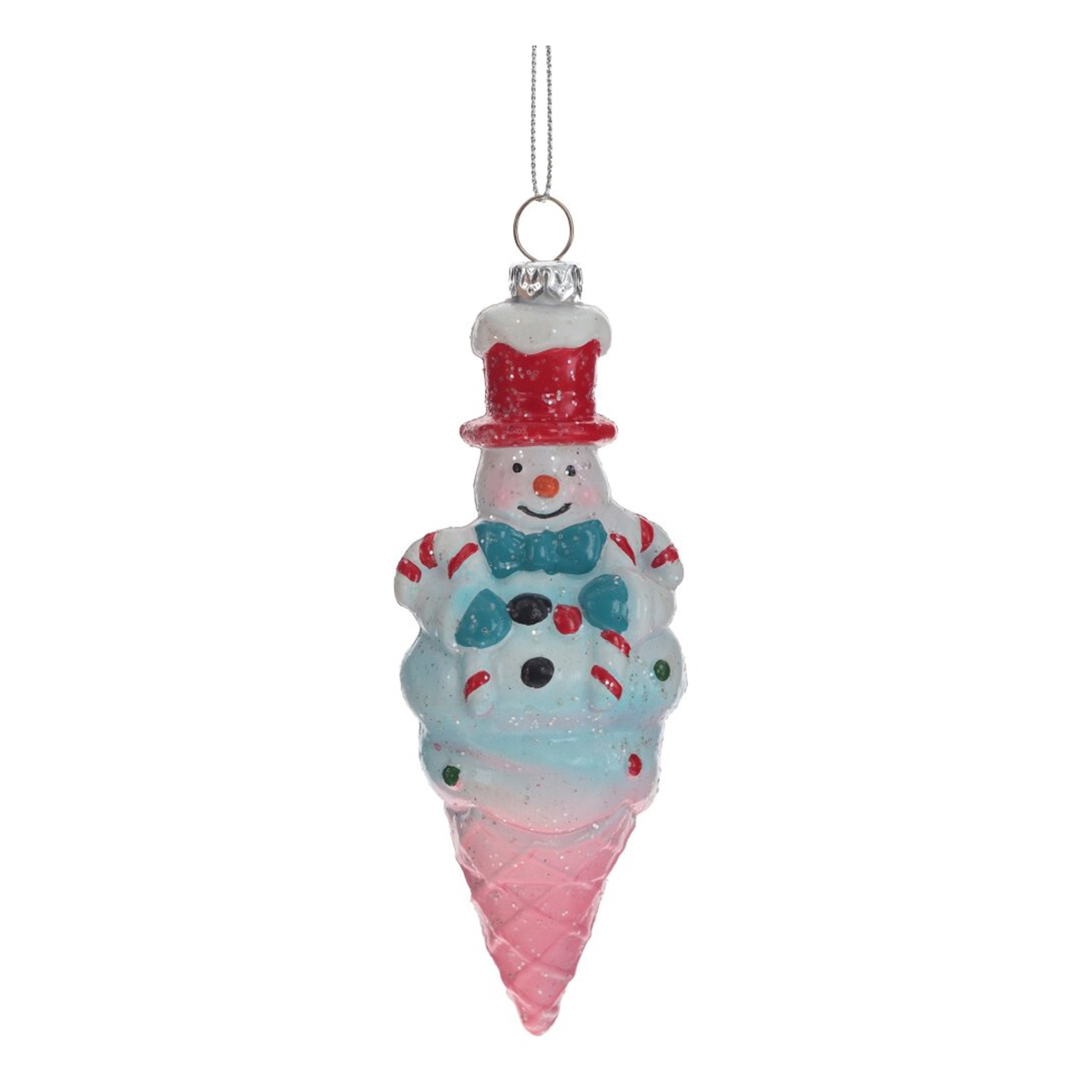 Стильное елочное украшение “Снеговик-мороженое”. Эта очаровательная подвеска изготовлена из полимерного материала, имитирующего стекло .Подвеска выполнена в пастельных тонах и украшена нежным узором и блестящими элементами, что делает ее идеальным украшением для новогоднего декора. Воздушная и нежная, она придаст вашей елке неповторимый шарм и сказочную атмосферу. Без возможности выбора дизайна.