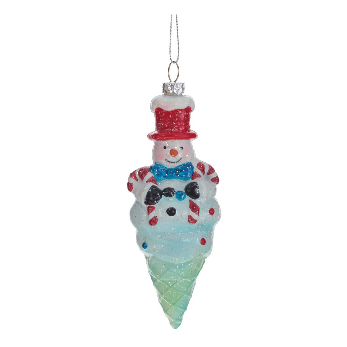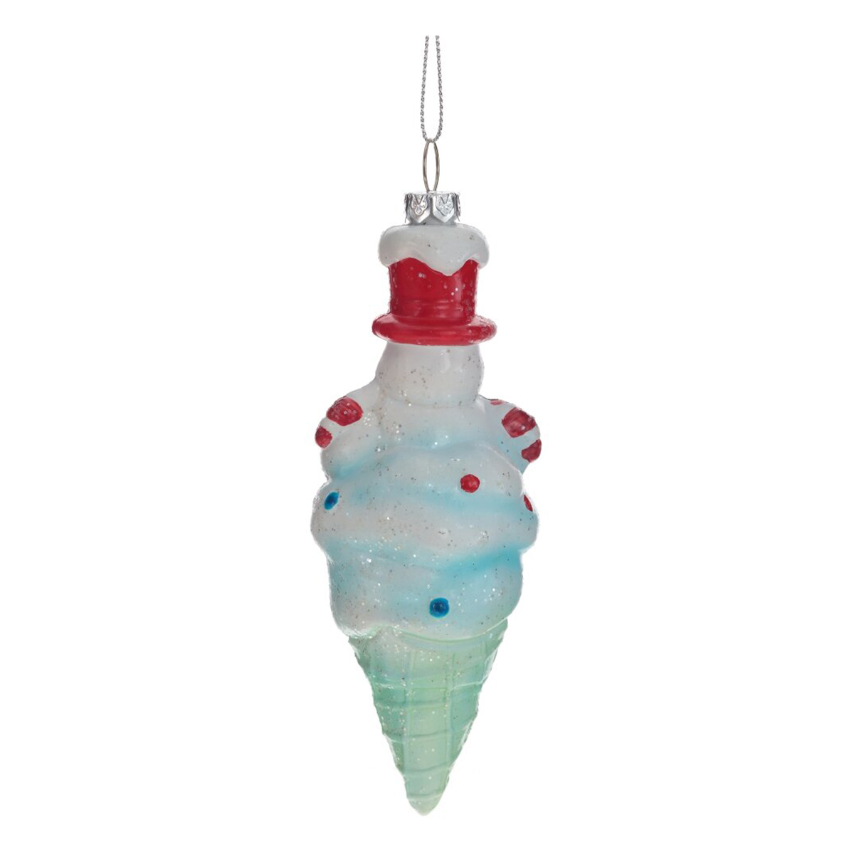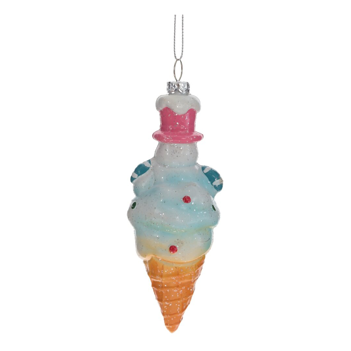 Стильное елочное украшение “Снеговик-мороженое”. Эта очаровательная подвеска изготовлена из полимерного материала, имитирующего стекло .Подвеска выполнена в пастельных тонах и украшена нежным узором и блестящими элементами, что делает ее идеальным украшением для новогоднего декора. Воздушная и нежная, она придаст вашей елке неповторимый шарм и сказочную атмосферу. Без возможности выбора дизайна.