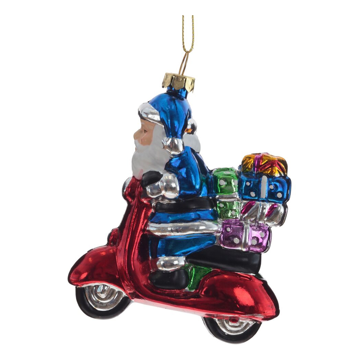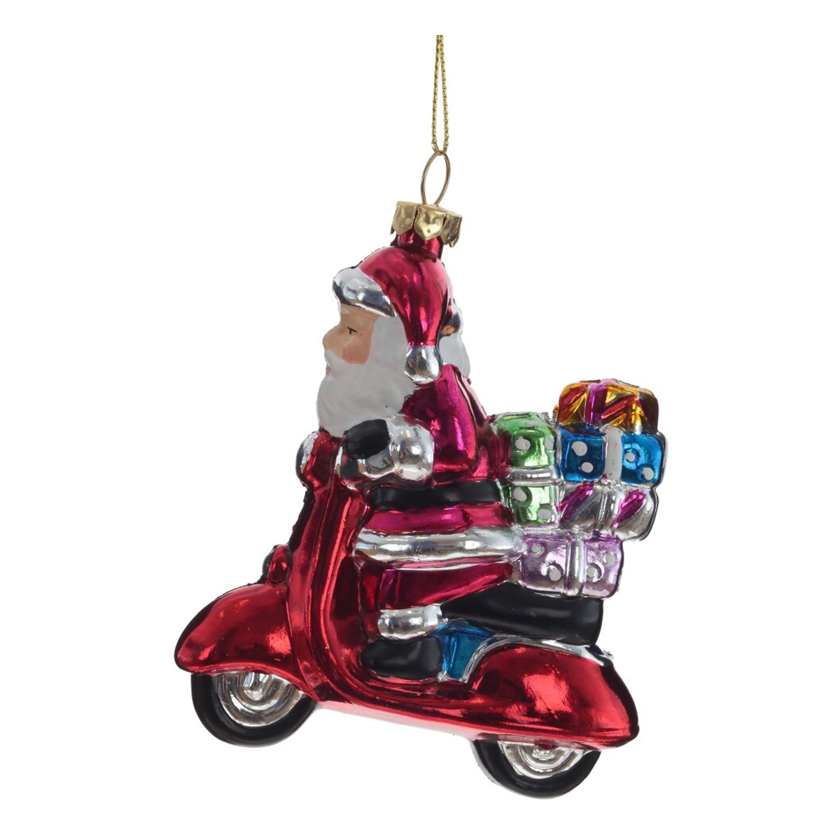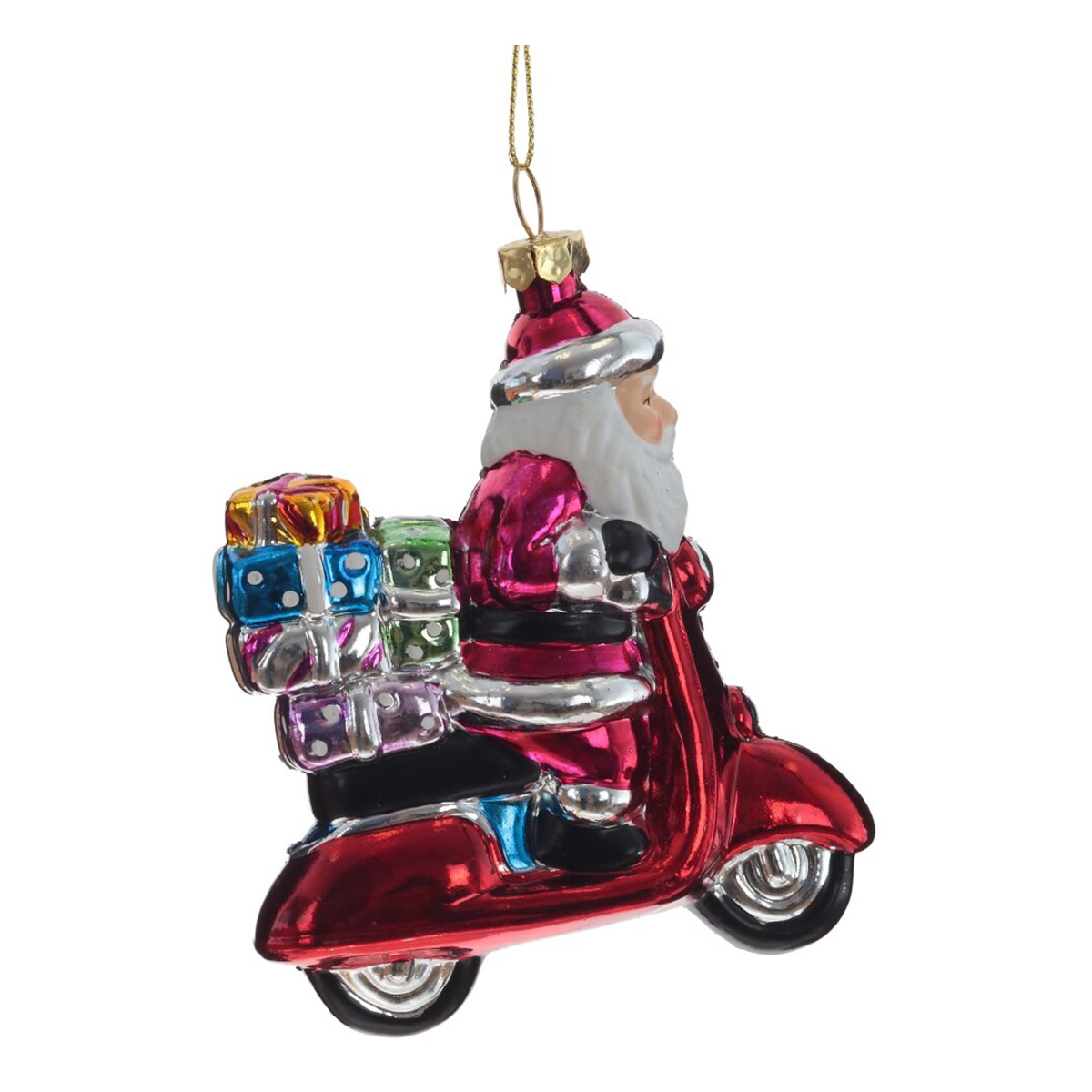 Украшение новогоднее "Дед Мороз на мопеде" — это яркий и оригинальный аксессуар, который добавит незабываемое настроение вашему новогоднему декору. Изготовленное из полимерных материалов, оно имитирует стеклянную елочную игрушку, но в то же время остается безопасным для детей и домашних животных. Яркие цвета делают эту елочную игрушку настоящей изюминкой среди других новогодних украшений. Представлено в двух вариантах цвета: Дед Мороз в синем костюме на красном мопеде, и в розовом костюме на красном мопеде. Без возможности выбора дизайна.