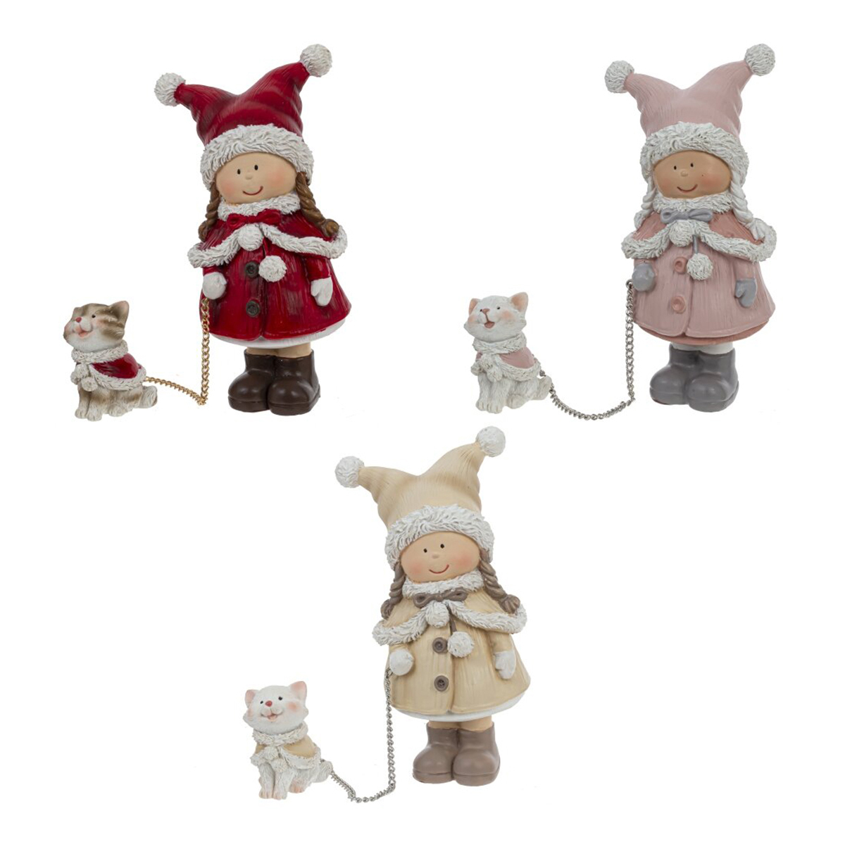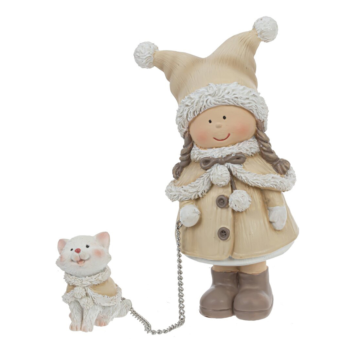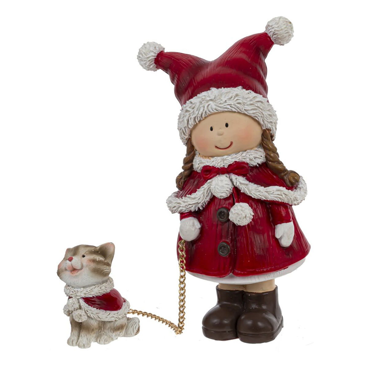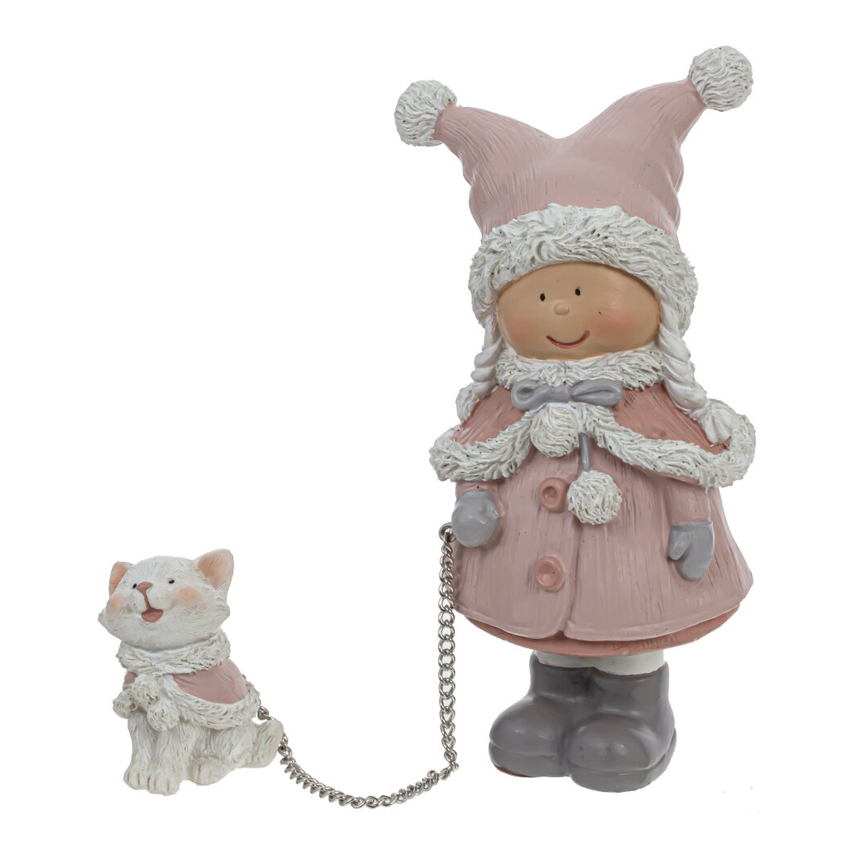 Очаровательная фигурка “Девочка с кошечкой”. Эта милая и стильная зимняя композиция идеально подойдет для украшения полки, камина, стола или любого другого места в вашем доме и создаст атмосферу сказочного волшебства в любом интерьере. Так же, она может стать частью новогодней композиции или оригинальным подарком для близких на Новый год. Без возможности выбора дизайна.