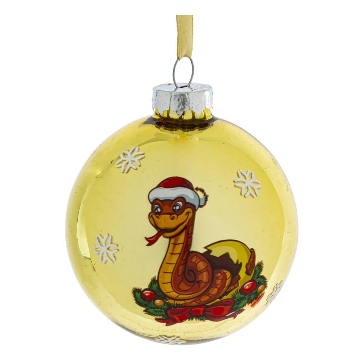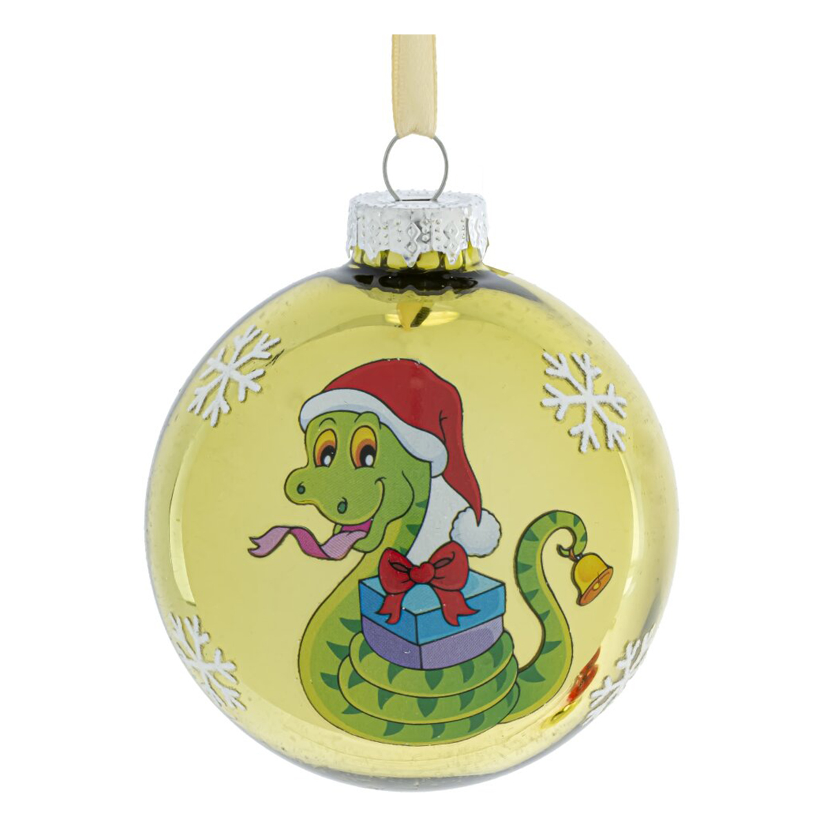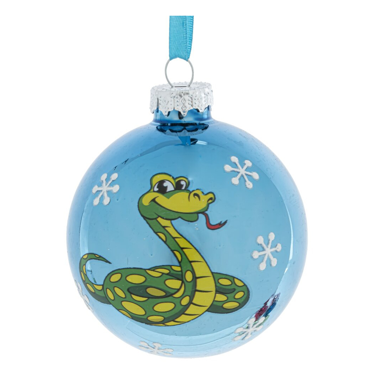 Новогоднее украшение "Шар со змейкой" включает в себя набор из 12 стеклянных шаров диаметром 8 см. Каждый шар отличается уникальным дизайном с изображением яркой и веселой змейки, придающей изделию игривый характер. Разнообразие цветов и оригинальных рисунков делает этот набор идеальным для украшения елки, создавая атмосферу праздника и радости. Шары легко впишутся в любой декор, добавляя яркие акценты и неповторимое настроение.