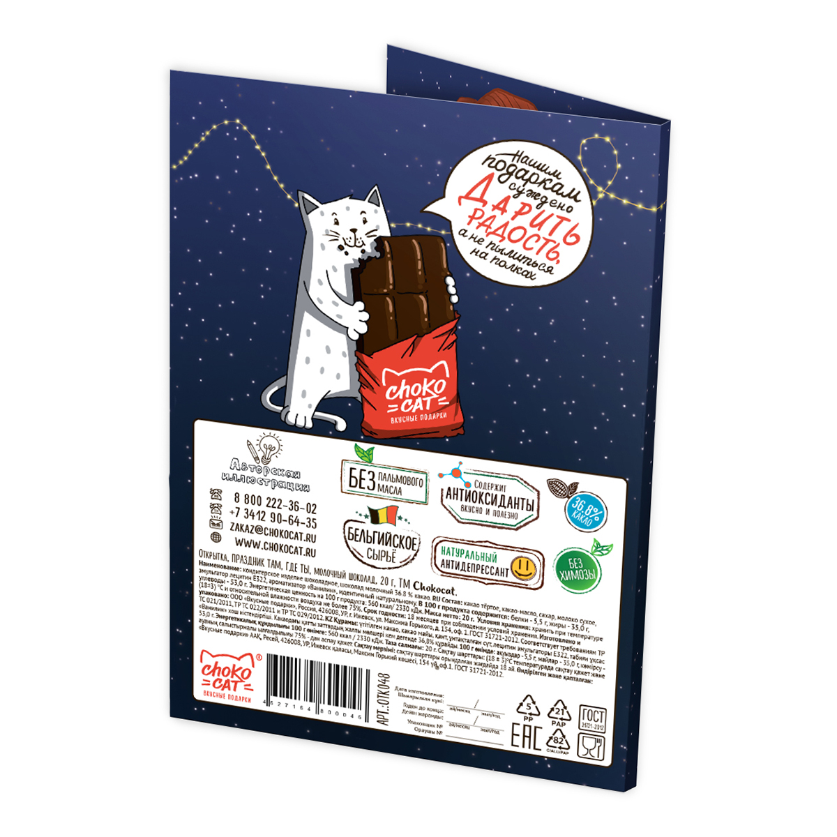 ChokoCat Открытка с шоколадными плитками 20 г ПРАЗДНИК ТАМ ГДЕ ТЫ ОТК048 Фото 2.