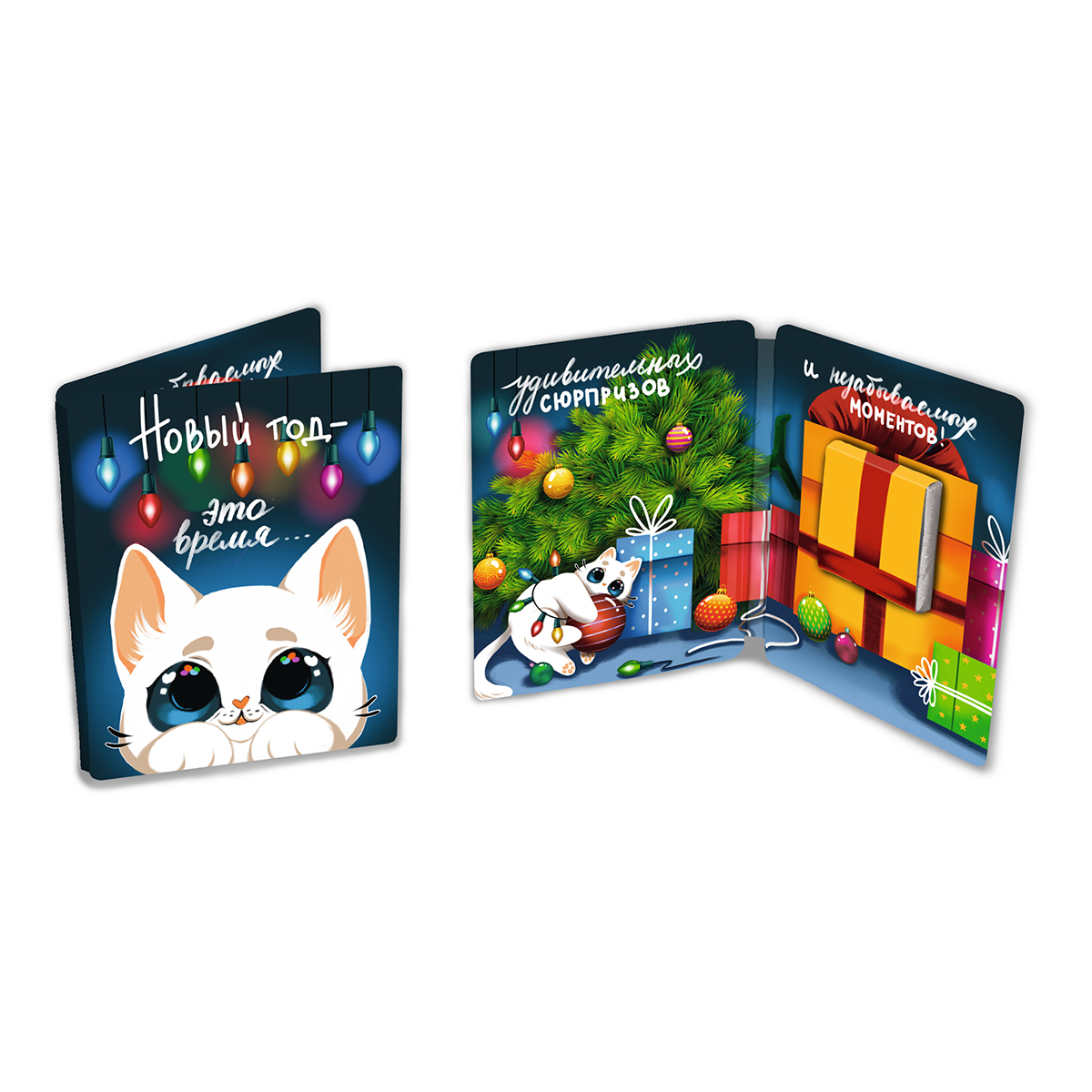 "ChokoCat" Мини открыта с шоколадными плитками 5 г "НОВЫЙ ГОД - ЭТО ВРЕМЯ" ОМ067