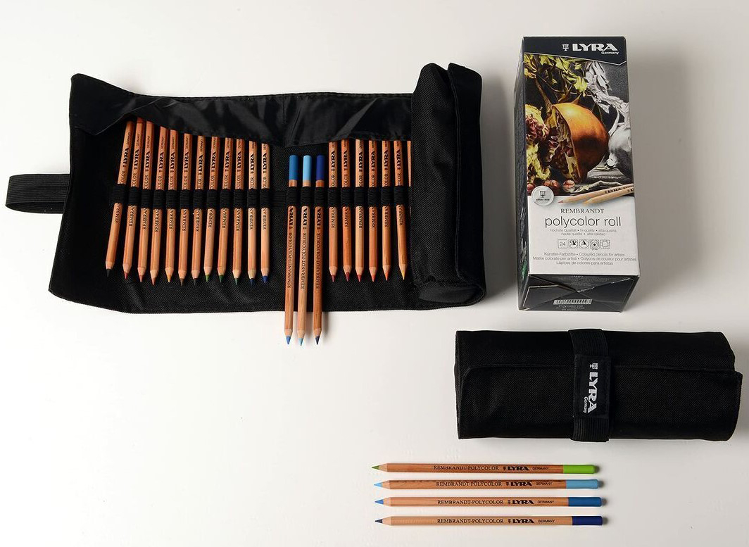 Набор цветных карандашей Rembrandt Polycolor LYRA - профессиональные карандаши самого высокого качества. Изготовлен из сертифицированной кедровой древесины. В наборе замечательно подобрана палитра из 24 цветов от нежных пастельных до ярких и насыщенных, которые хорошо смешиваются друг с другом и накладываются, создавая новые оттенки и красиво просвечивая сквозь слои. Прочные водостойкие грифели на масляной основе передают яркость цвета, сравнимую с масляными красками. Карандаши упакованы в текстильный пенал, в котором их удобно хранить или брать с собой.