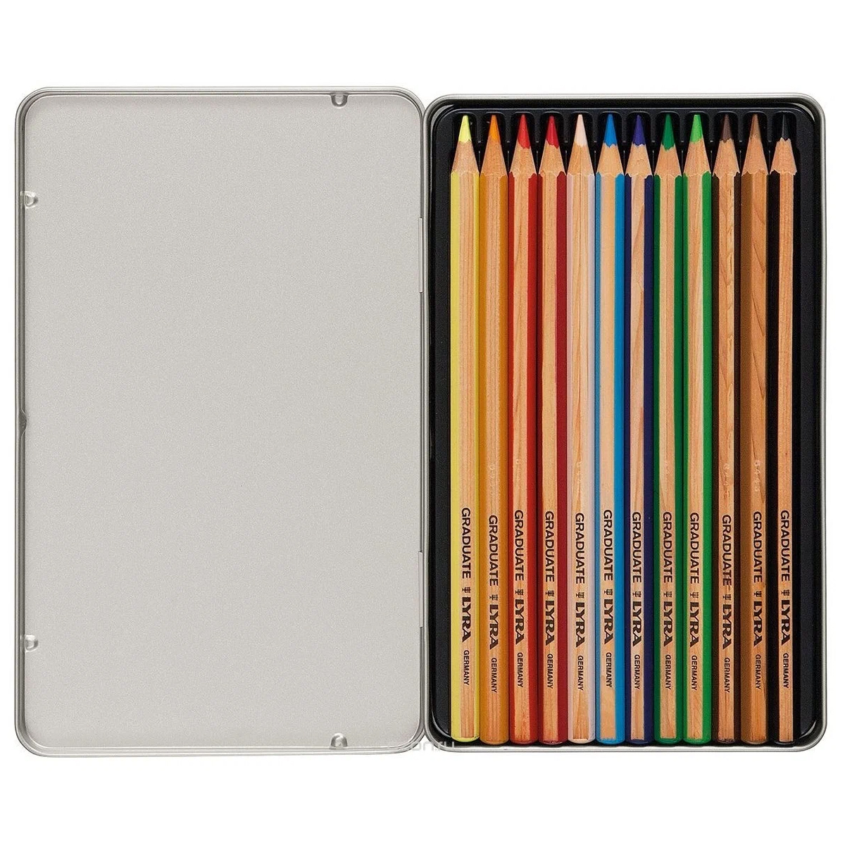 Lyra Graduate Permanent - серия высококачественных цветных карандашей гексагональной формы. Корпус выполнен из кедрового дерева. Диаметр грифеля: 3,8 мм. Интенсивные цвета, благодаря высокой концентрации пигмента. Цвета с высокой покрывающей способностью и возможностью смешивания при нанесении. Легко затачиваются и экономично расходутся.