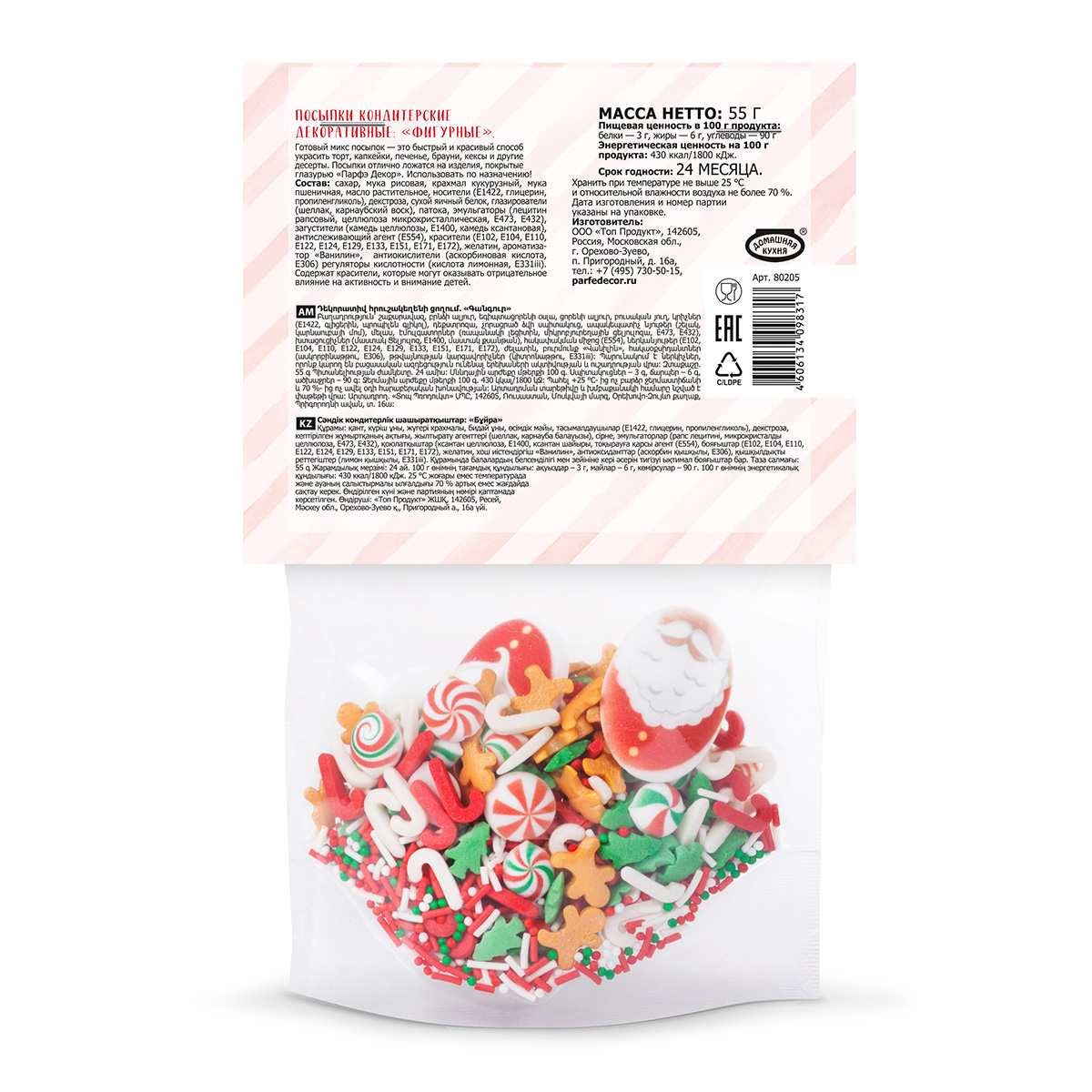 "Придайте вашей домашней выпечке неповторимость и яркость с кондитерскими декоративными посыпками ""Парфэ Декор""! Просто положите ее на свежую глазурь или крем, и ваш десерт превратиться в настоящее произведение искусства. Готовый микс посыпок и объемного сахарного декора [безе, медальоны] - это быстрый и красивый способ украсить торт, капкейки, печенье, брауни, кексы и другие десерты. Посыпки отлично ложатся на на изделия, покрытые глазурью ""Парфэ Декор"". Белки - 3 г, жиры - 6 г, углеводы - 90 г 430 ккал/ 1800 кДж"