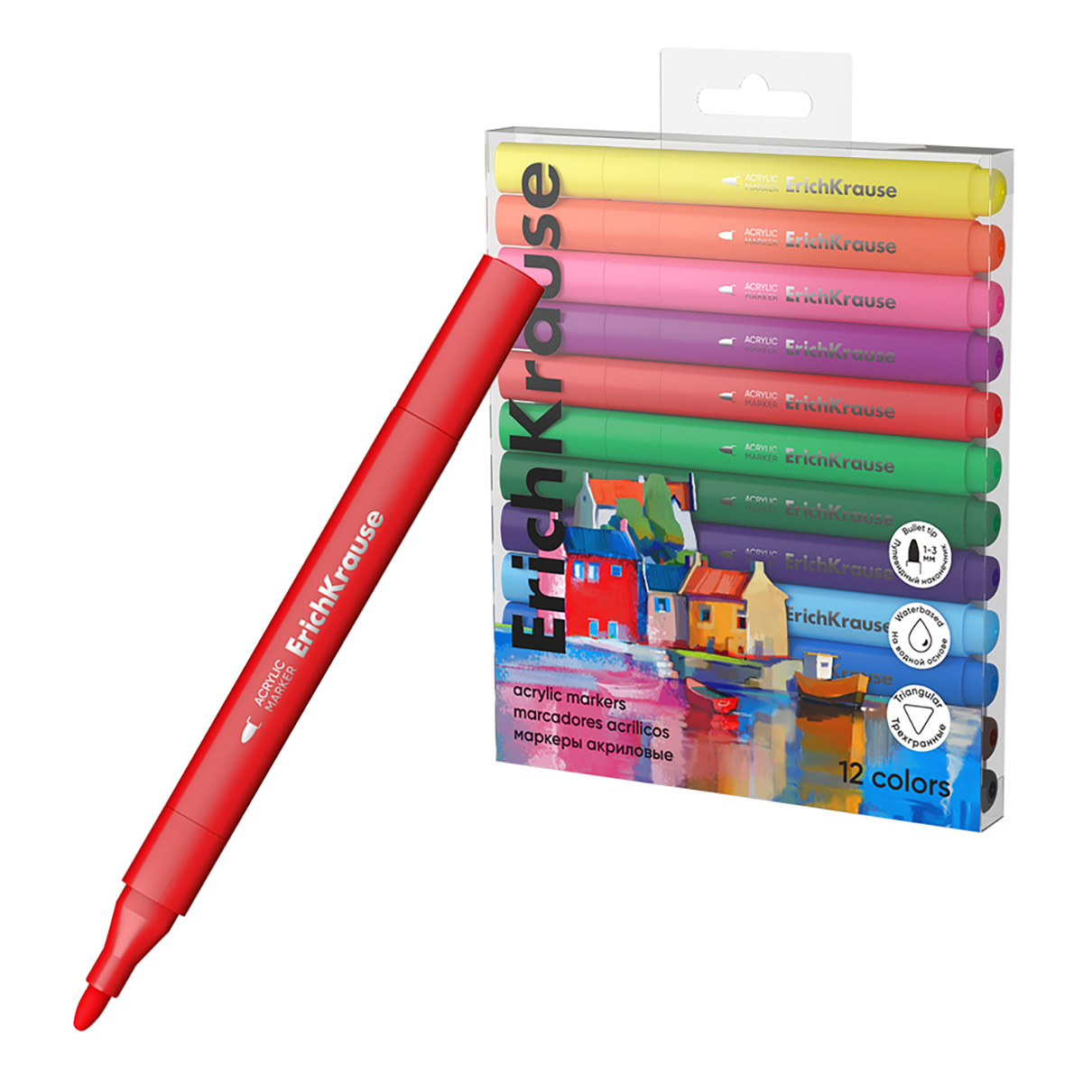 Акриловые маркеры на водной основе с пулевидным наконечником. Подходят для всех типов поверхностей: стекло, керамика, холст, бумага, пластик, дерево, камень. Идеальны для скетчинга и декорирования.