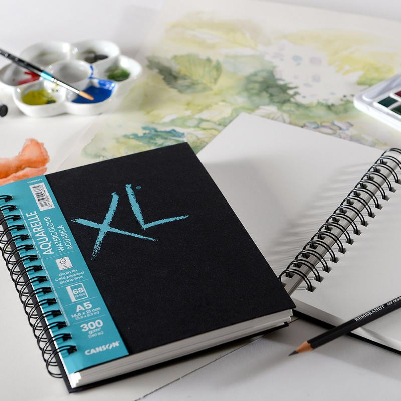 Скетчбуки для акварели Canson XL WATERCOLOUR специально разработаны для мокрых техник. Высокая плотность 300 г/м2 позволяет править работу, смывая участки изображения водой. Мелкозернистая поверхность листов отлично удерживает пигмент. Скетчбук содержит 34 листа. Благодаря широкой спирали и твердой обложке он станет надежным компаньоном во время путешествий. Будет идеален для студентов и всех, кто ищет хорошую бумагу по доступной цене.