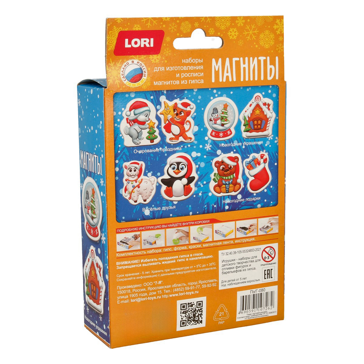 Комплектация: Формы, гипс, акварельные краски, кисть, магнитная лента, инструкция.