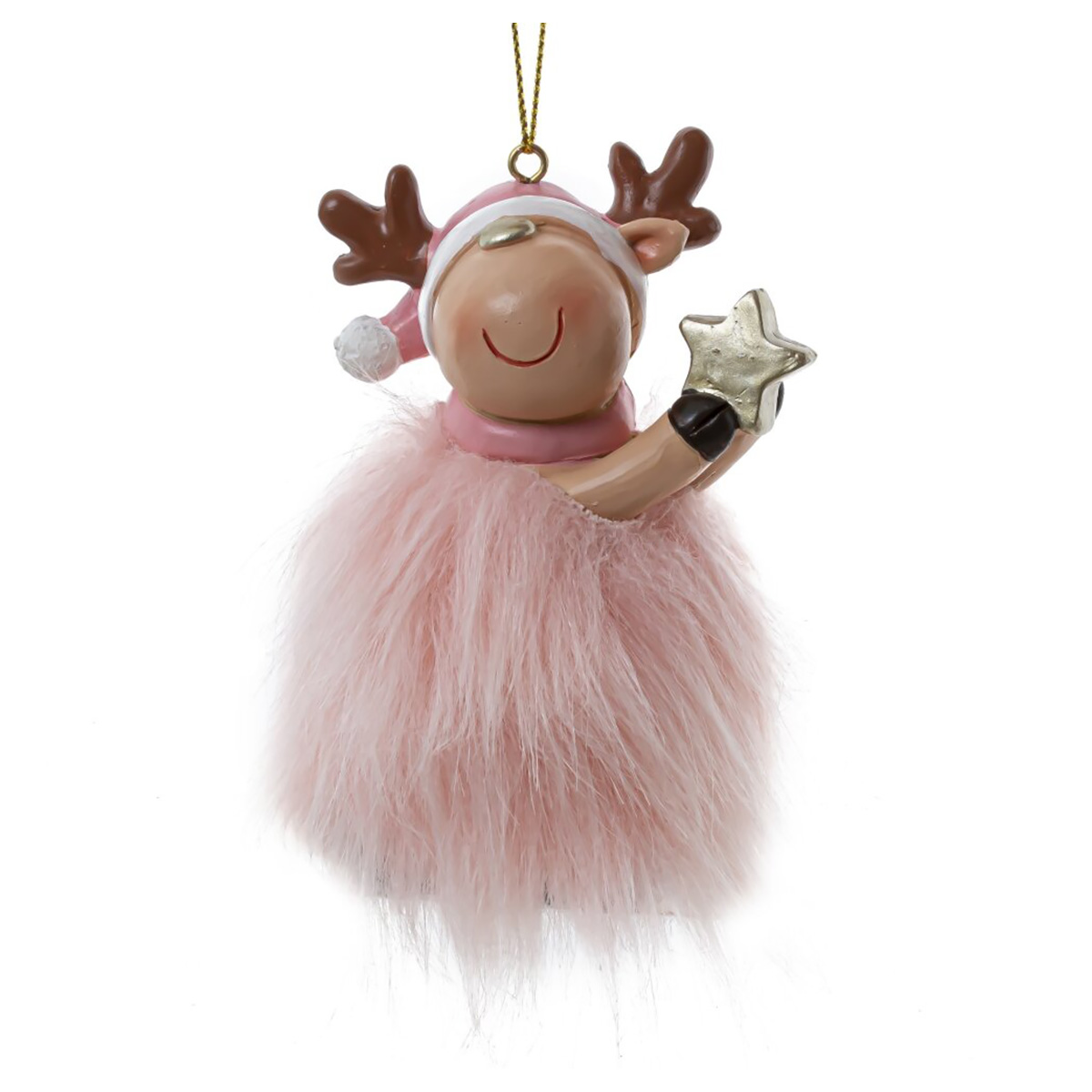 807929 Фигурка декоративная подвесная Олень 6 х 6 х 10 см Розовый Фото 1.