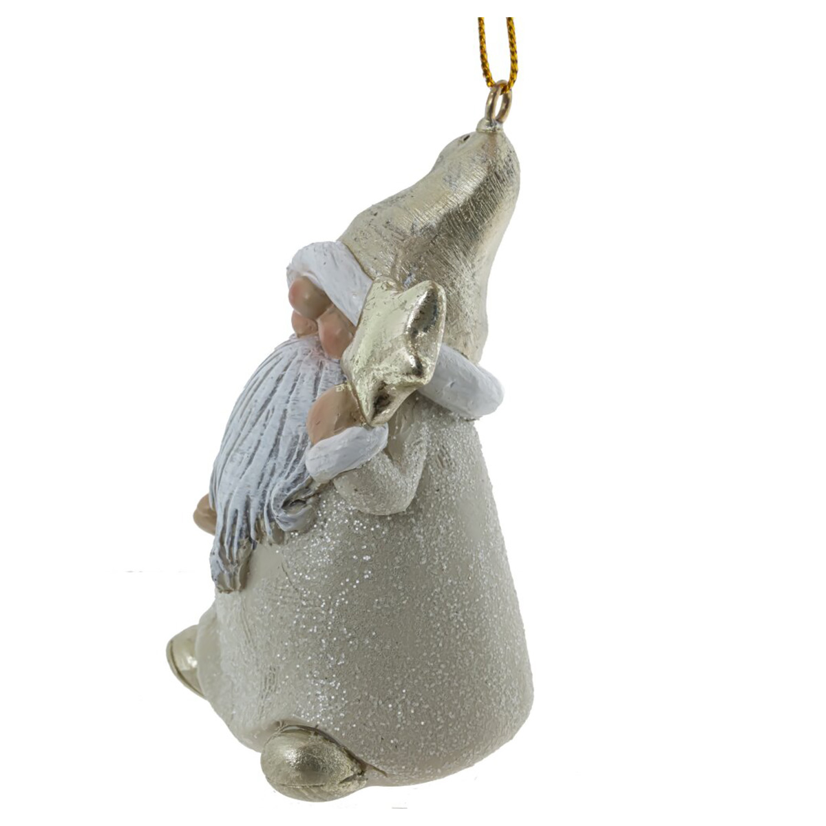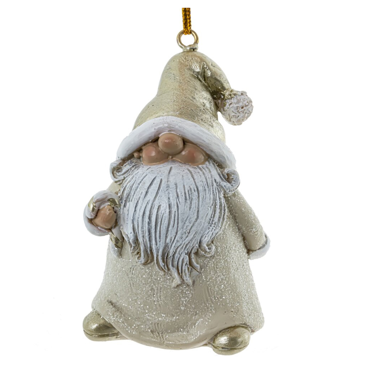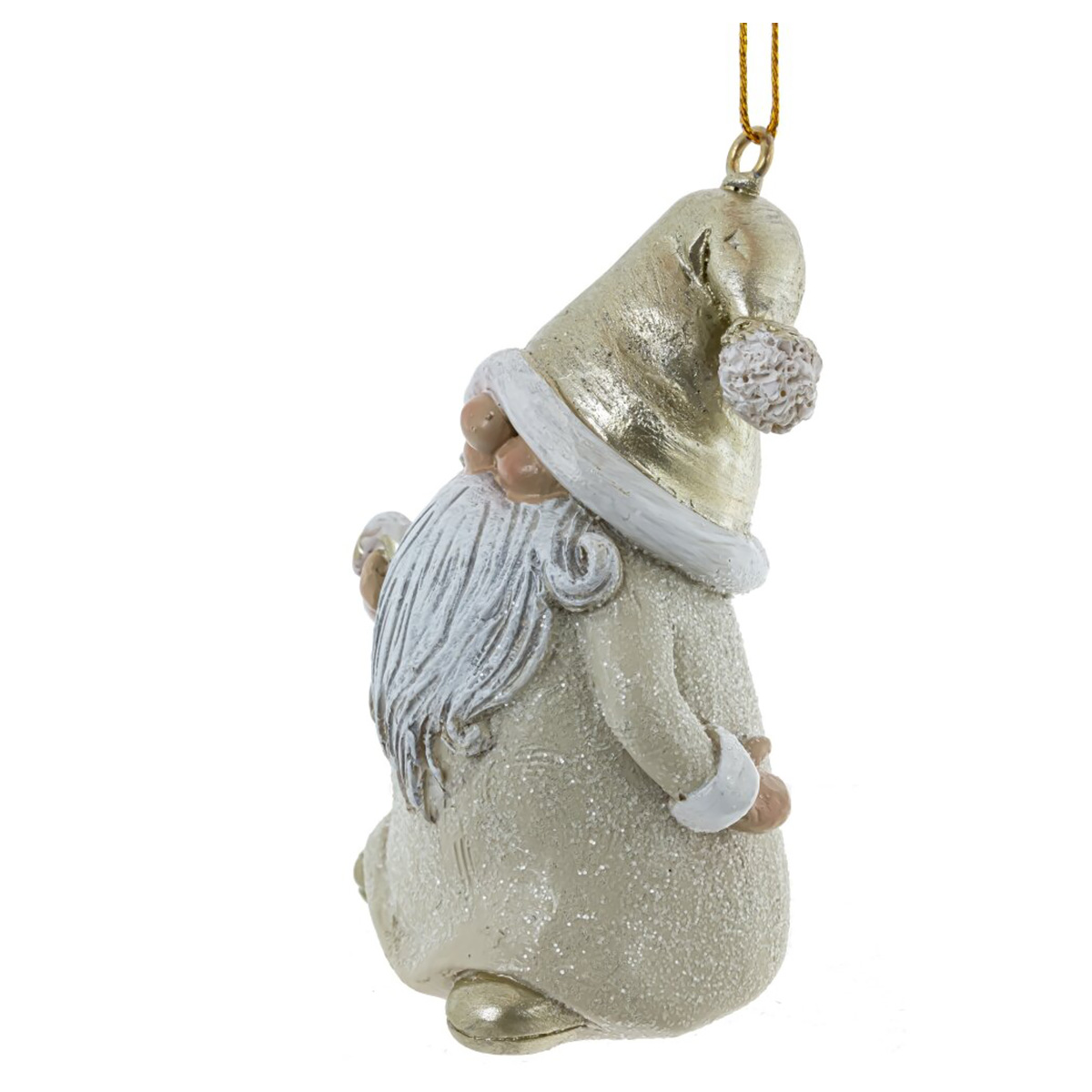 Встречайте сказочного гнома, который добавит в ваш дом уют и волшебство! Эта подвесная фигурка в бело-золотом цвете с блестящим шиммером станет символом удачи и домашнего очага. Ее можно повесить на елку или декорировать окно. Гном отлично смотрится в композиции с еловыми ветками и свечами. Это идеальный подарок для любителей сказочных украшений, которые хотят привнести магию и уют в свой дом.