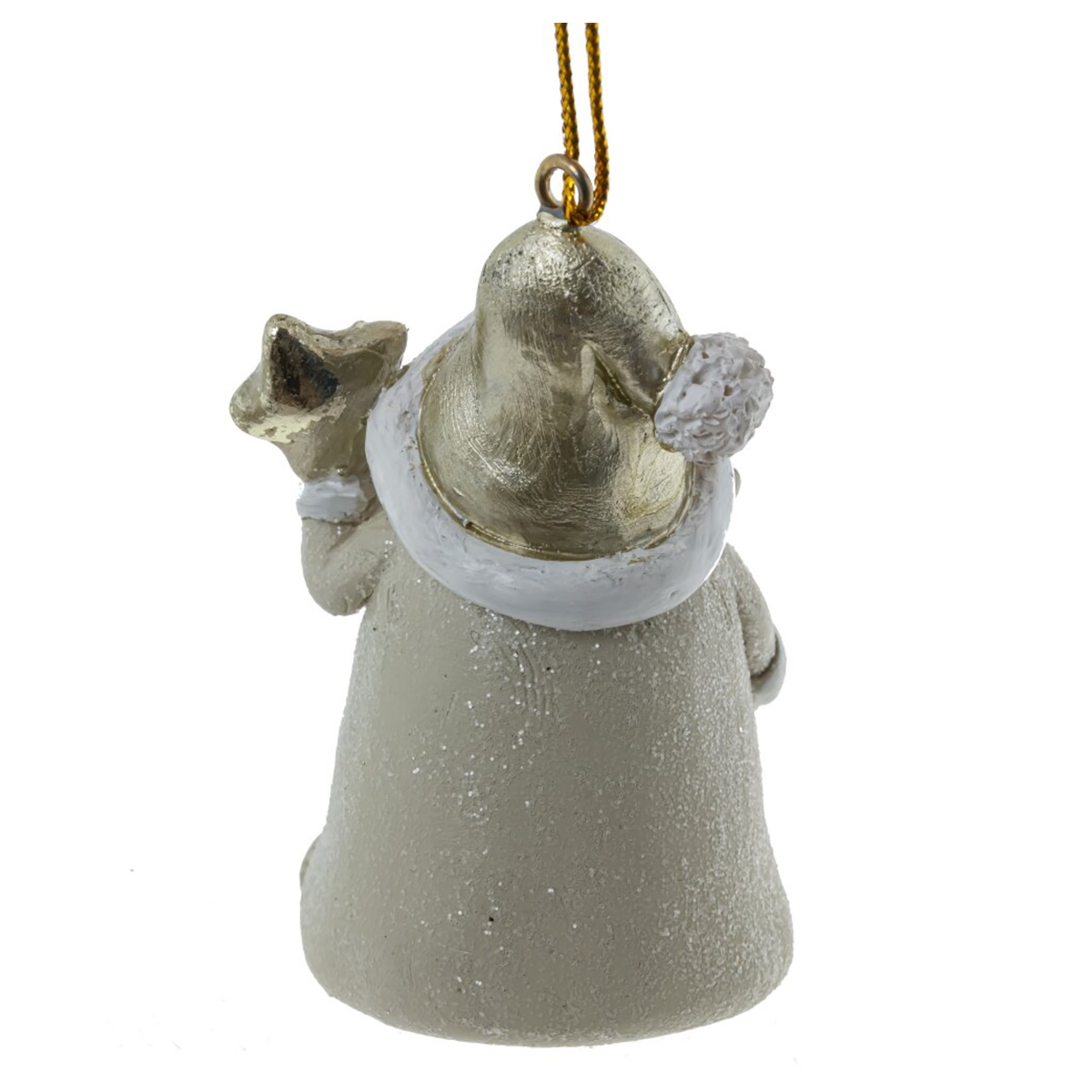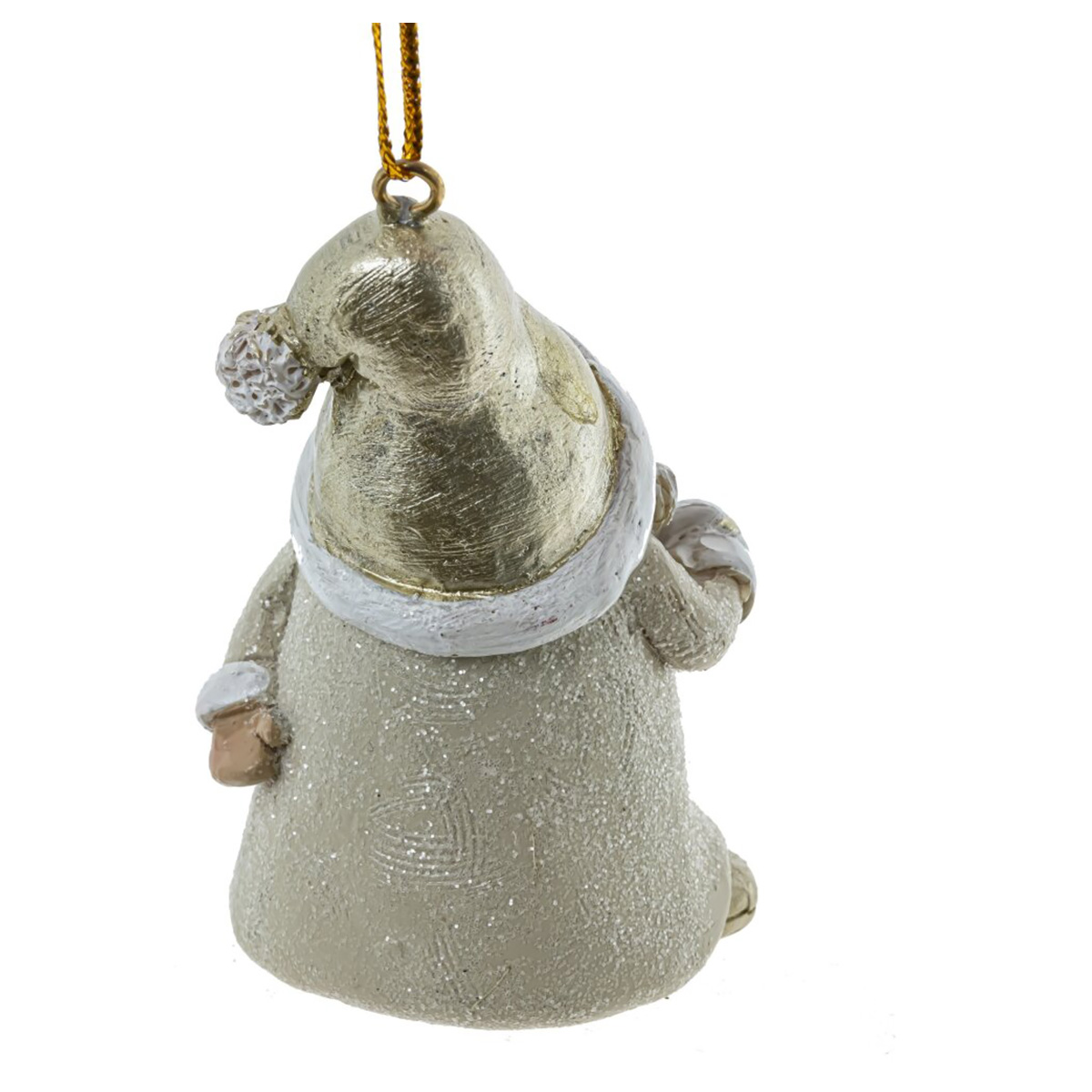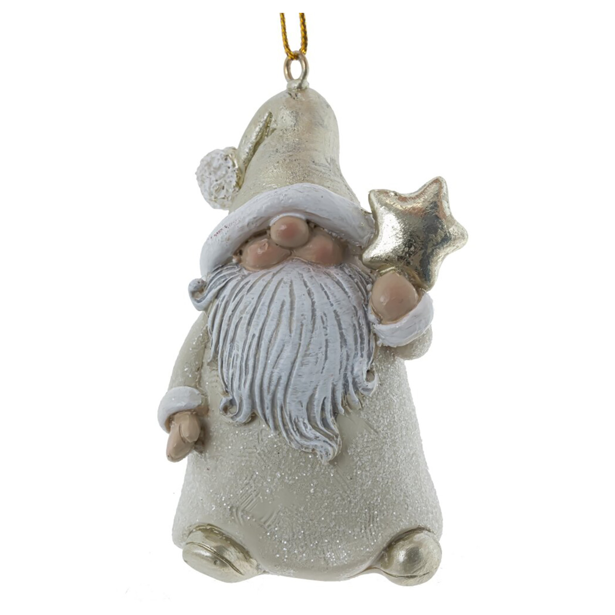 Встречайте сказочного гнома, который добавит в ваш дом уют и волшебство! Эта подвесная фигурка в бело-золотом цвете с блестящим шиммером станет символом удачи и домашнего очага. Ее можно повесить на елку или декорировать окно. Гном отлично смотрится в композиции с еловыми ветками и свечами. Это идеальный подарок для любителей сказочных украшений, которые хотят привнести магию и уют в свой дом.
