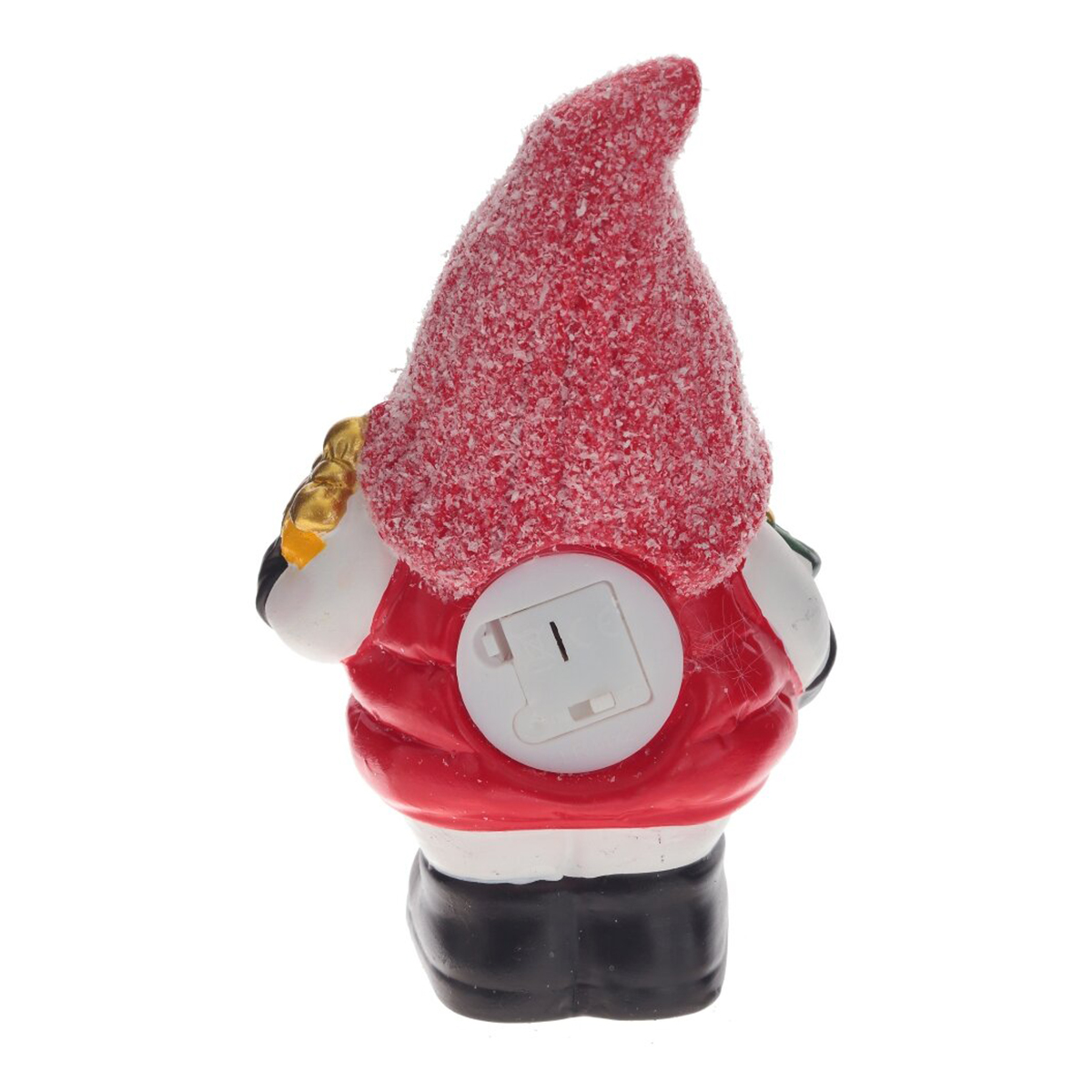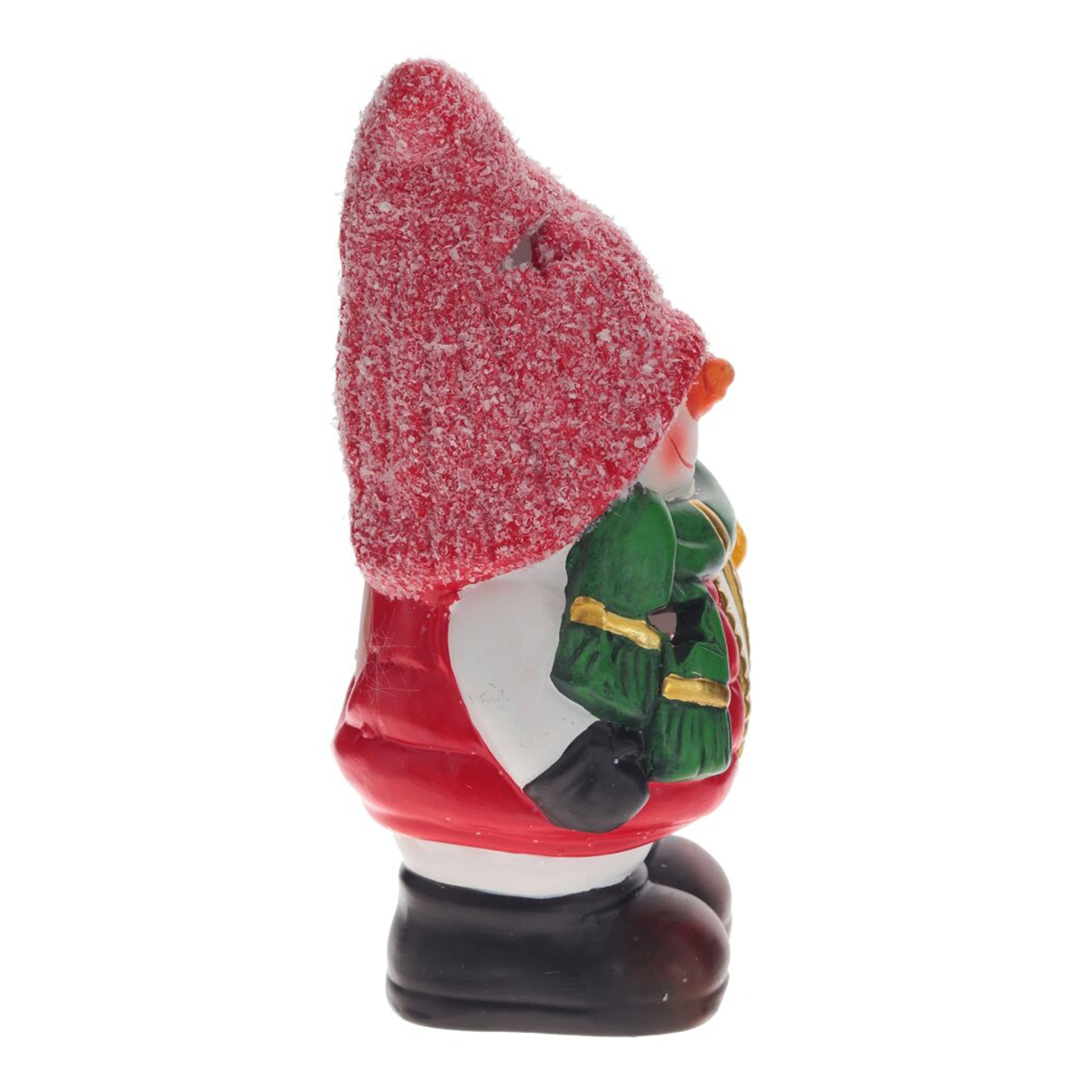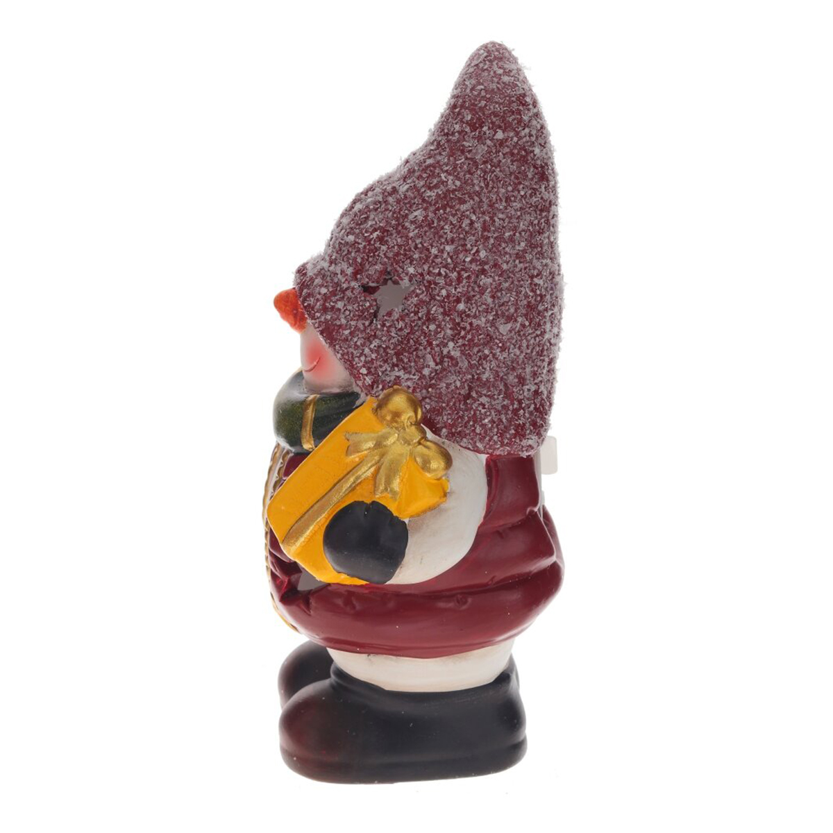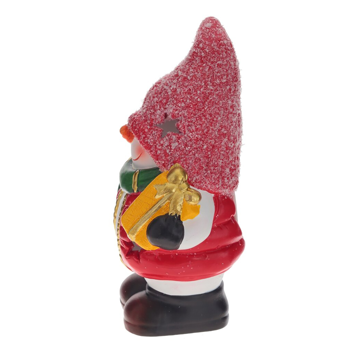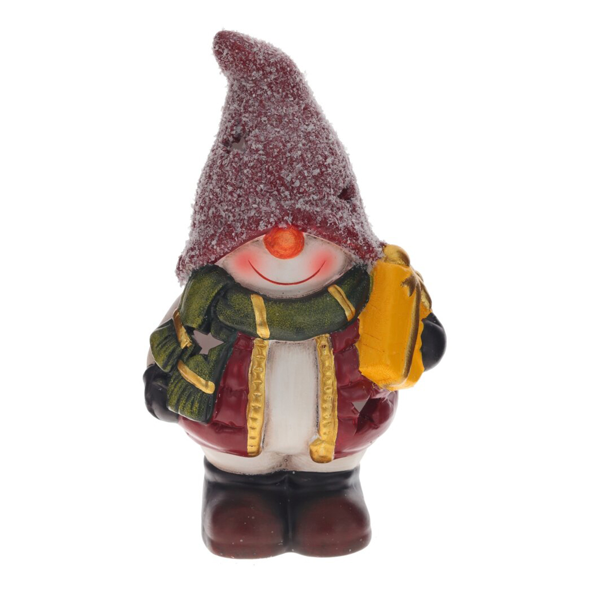 Декоративная фигурка с подсветкой "Снеговик" изготовлена из керамики. Веселый снеговик в колпаке, украшенном снежным глиттером, держит подарок. Через отверстия в форме звезд видна цветная подсветка, которую можно включить с помощью рычага на дне фигурки. Работает от двух батареек LR44 [входят в комплект]. Эта фигурка создаст уют и праздничное настроение в вашем доме на новогодние праздники. Представлена в двух вариантах красном и бордовом цвете.