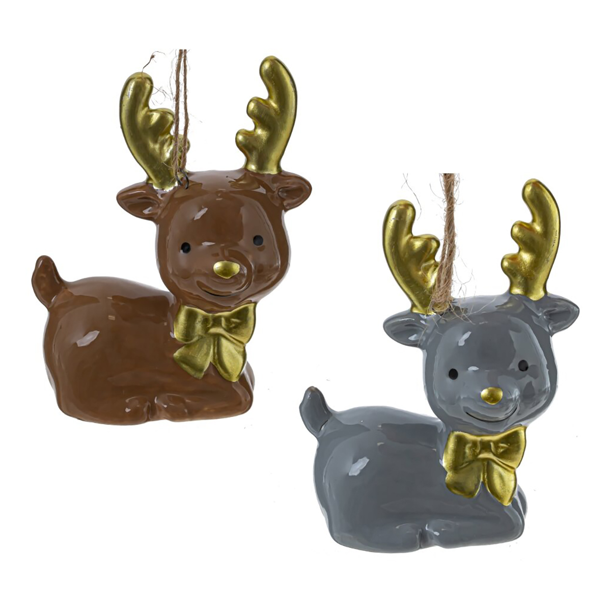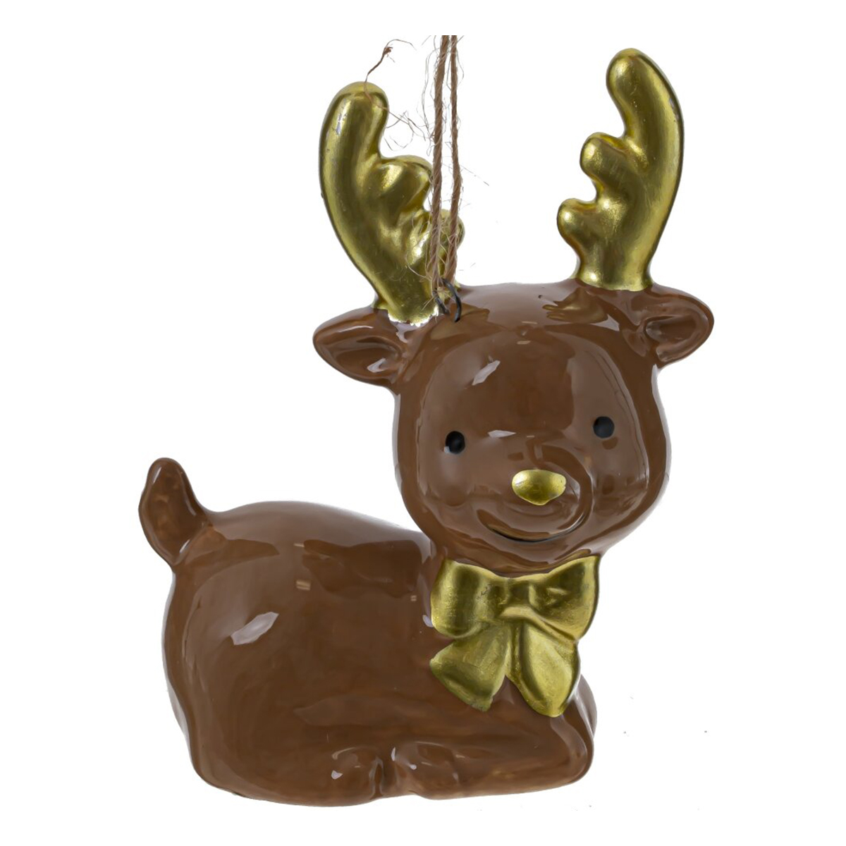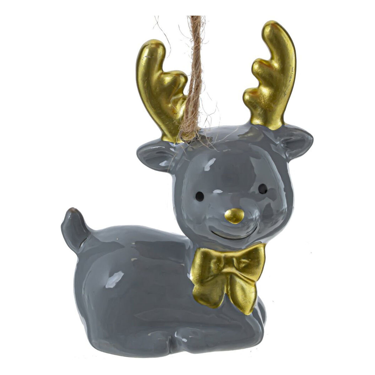 Декоративная подвесная фигурка "Олень" из керамики очарует вас своим милым дизайном. Симпатичный олененок с золотыми рожками и нежным бантиком придаст вашему интерьеру уют и праздность. Фигурка доступна в двух цветах – коричневом и сером, что позволяет выбрать идеальный вариант для любого декора. Она станет превосходным дополнением новогоднего украшения, создавая атмосферу тепла и сказки в вашем доме.