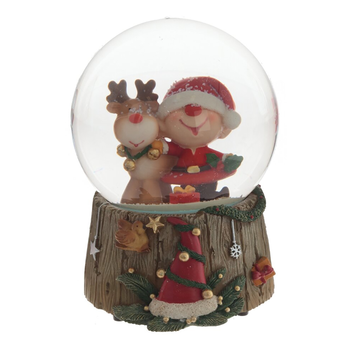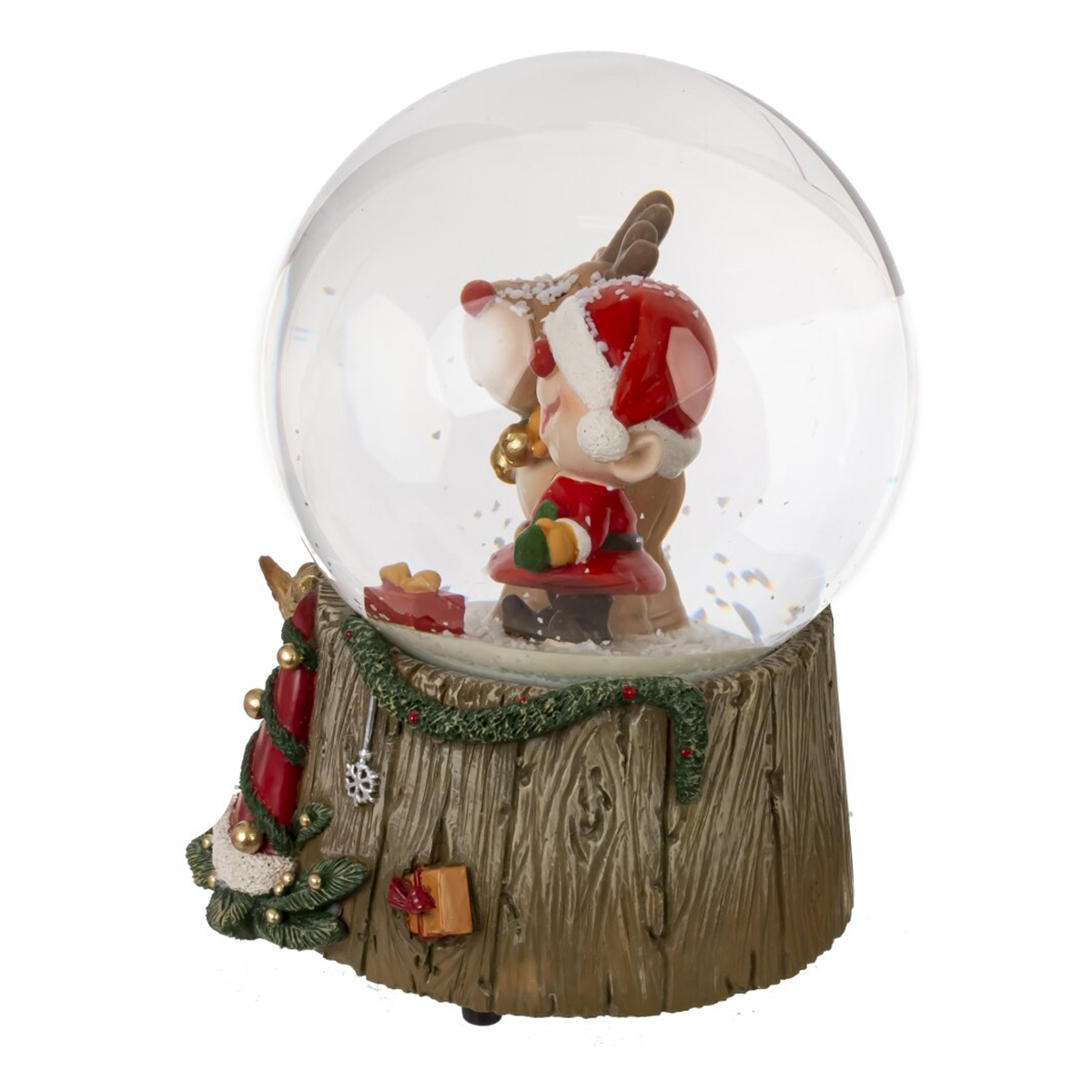 Гном и Олень вместе в стеклянном шаре – это прекрасное сочетание зимней магии и праздничного настроения. На подставке, стилизованной под деревянную бочку с новогодним колпаком и звездами, стоит стеклянный шар диаметром 10 см. Внутри этого шара расположены забавные фигурки гномика и олененка, создающие атмосферу веселого и радостного настроения. При встряхивании шара начинают падать белые хлопья снега, даря ощущение настоящей зимней сказки. А на дне подставки размещен заводной ключик, который запускает мелодию "We wish you a Merry Christmas & Happy New Year". Пусть этот "Гном и Олень" украсят ваш дом и наполнят его волшебством и теплом во время зимних праздников! Обратите внимание на температурный режим отгрузки выше 0°С