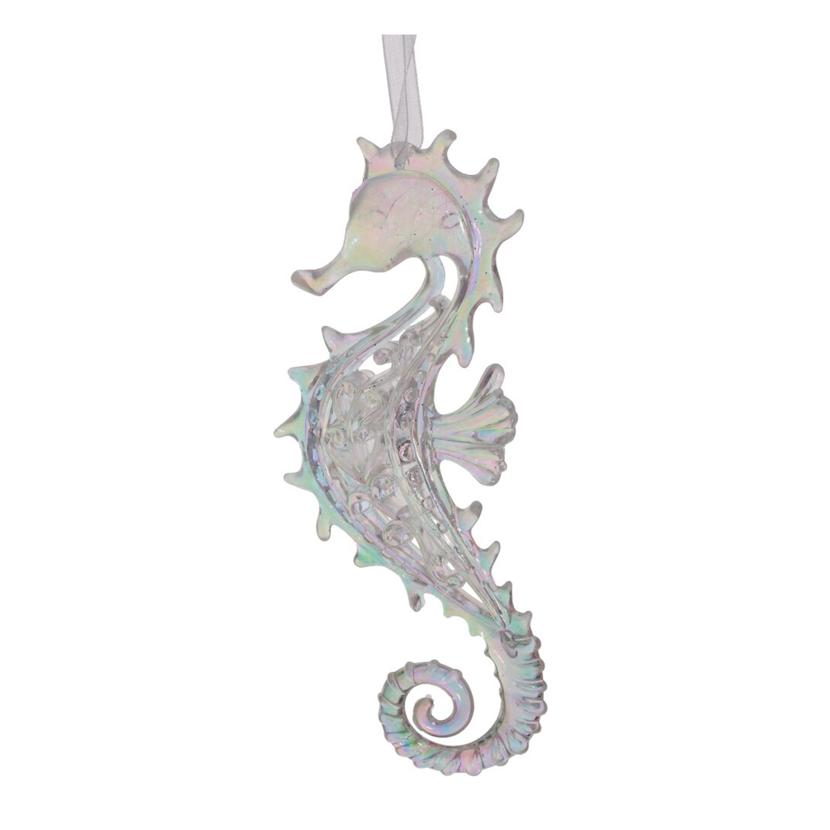 Новогоднее украшение "Морской конек" — это изысканная елочная игрушка, выполненная из высококачественных полимерных материалов в форме очаровательного морского конька. Оно представлено в двух великолепных вариантах: первый — полупрозрачный бирюзовый цвет, сверкающий благодаря нежному глиттеру, второй — полупрозрачный белый с жемчужным переливом. Эти украшения прекрасно дополнят вашу новогоднюю елку, придавая ей уникальный морской шик и волшебную атмосферу праздника.