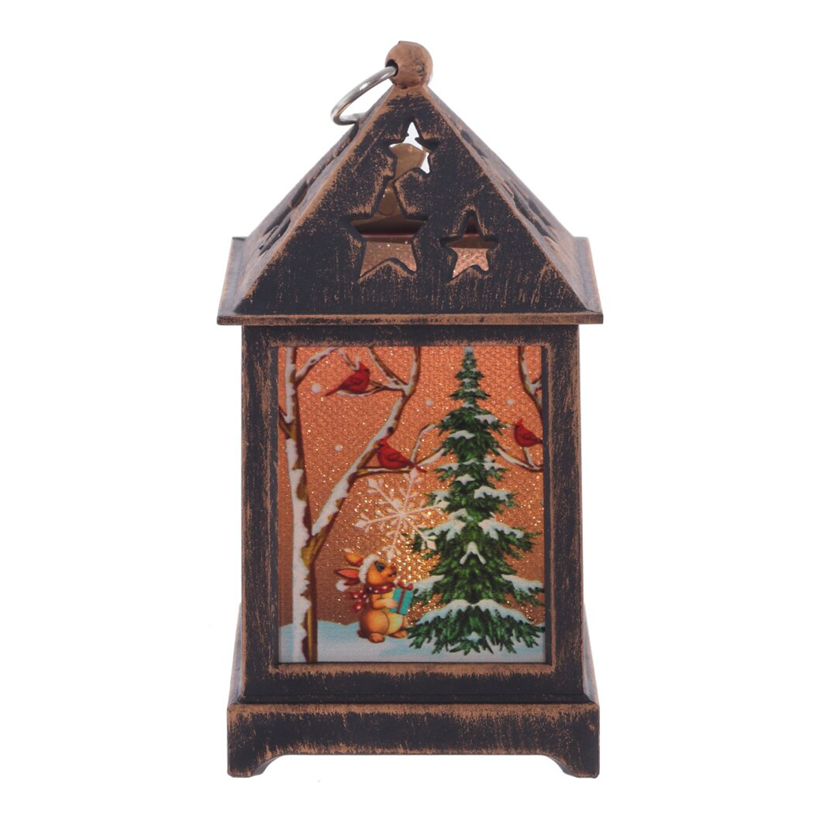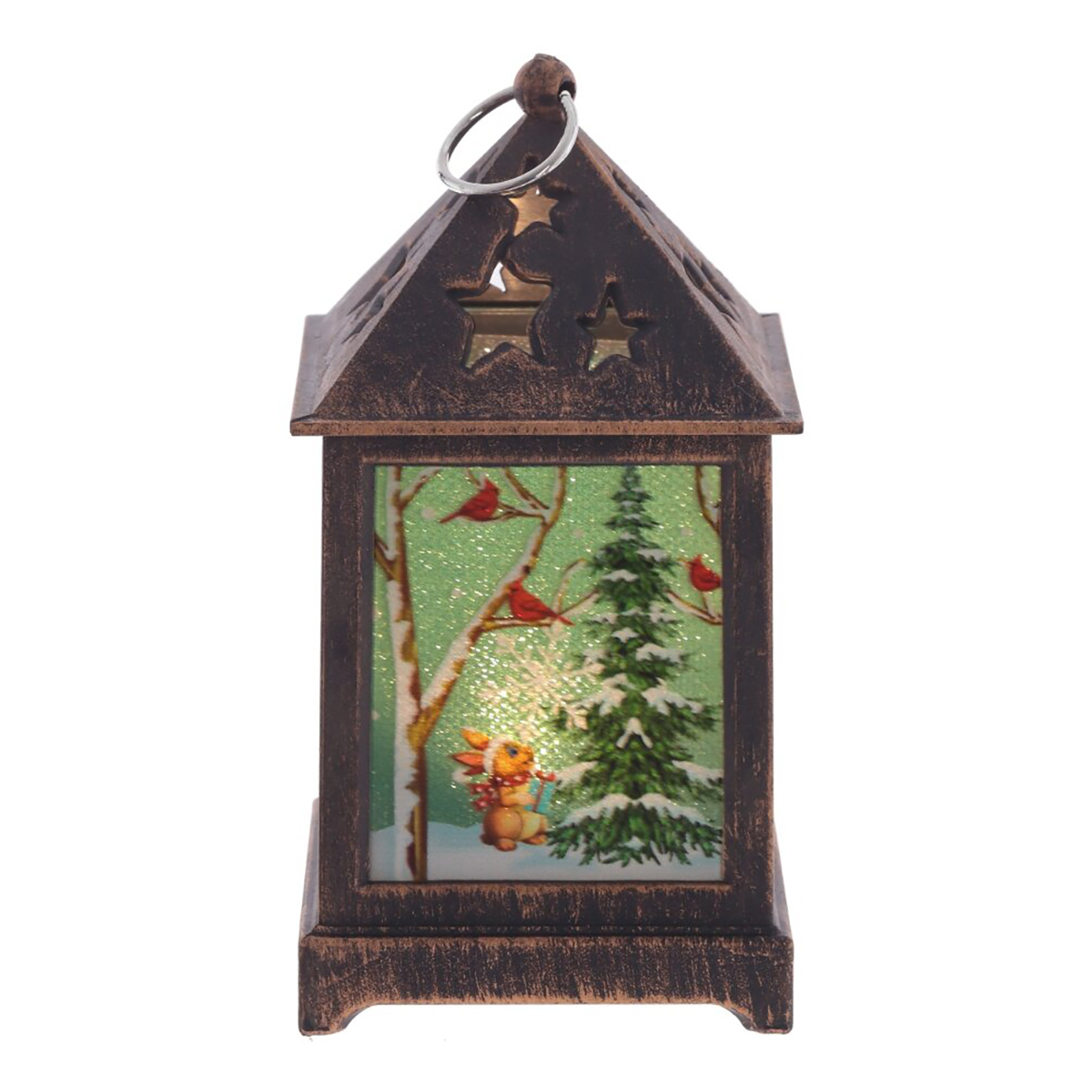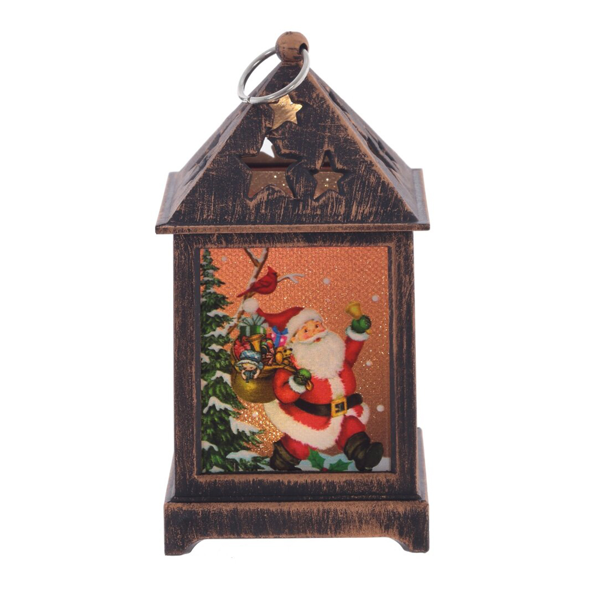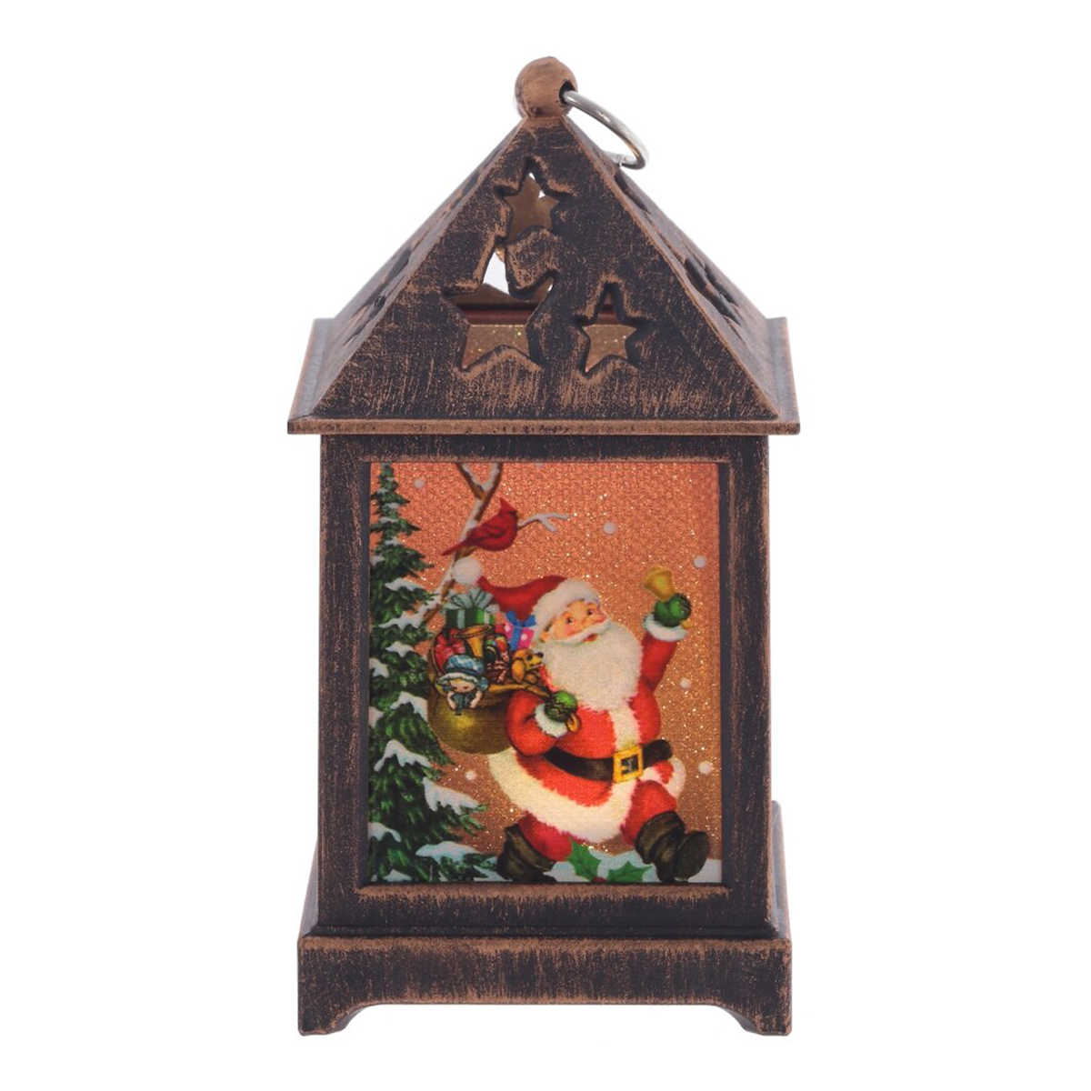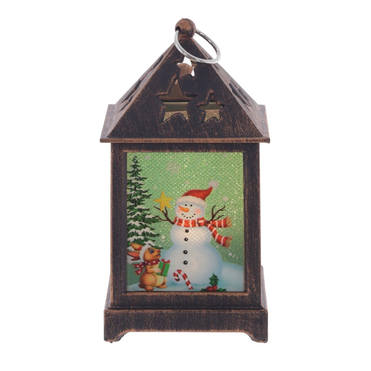 Декоративное изделие "Фонарь" выполнено в классическом стиле ручного фонаря из полимерных материалов, что делает его легким и долговечным. Компактные размеры позволяют разместить его в любом удобном месте. Фонарь оснащен подсветкой, активируемой рычагом на дне. Работает от трех батареек типа LR44 [в комплекте]. Доступны два варианта с новогодними сюжетами: снеговик на фоне зимнего пейзажа и Дед Мороз с елкой. Верхняя часть фонаря заостренная, с вырезанными звездами и кольцом для переноса или подвешивания. Такое украшение станет отличным дополнением к новогоднему декору, создавая атмосферу уюта и праздника.