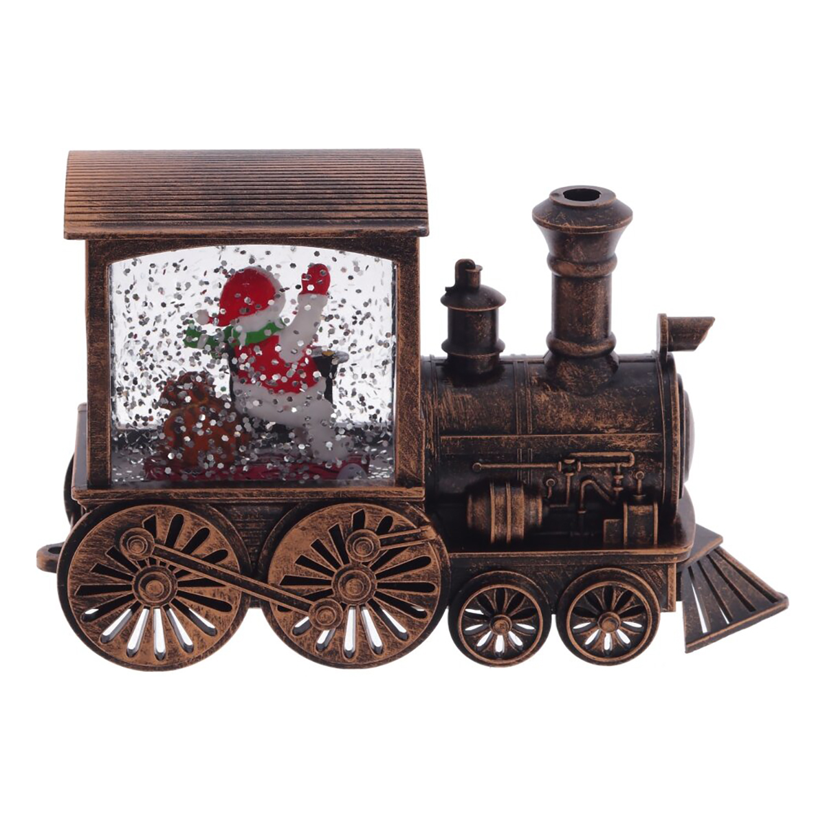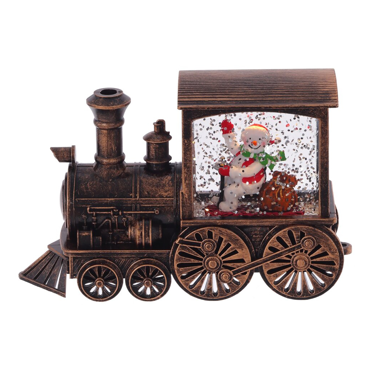 Декоративный паровоз "Снеговик" – это удивительное изделие с подсветкой, выполненное из прочных полимерных материалов в бронзовом цвете. Внутри разместился веселый снеговик с мешком подарков, который создает уютную атмосферу праздника. Кабина паровоза заполнена жидкостью с серебряным глиттером, и при встряхивании возникает эффект волшебного снегопада, придающий изделию особую магию. Подсветка, работающая от двух батареек типа AAA [в комплект не входят], делает паровоз еще более привлекательным и создает сказочный световой фон. Этот декоративный элемент станет отличным украшением вашего интерьера в зимний период и порадует как взрослых, так и детей. А красочная упаковка делает его идеальным подарком для близких.