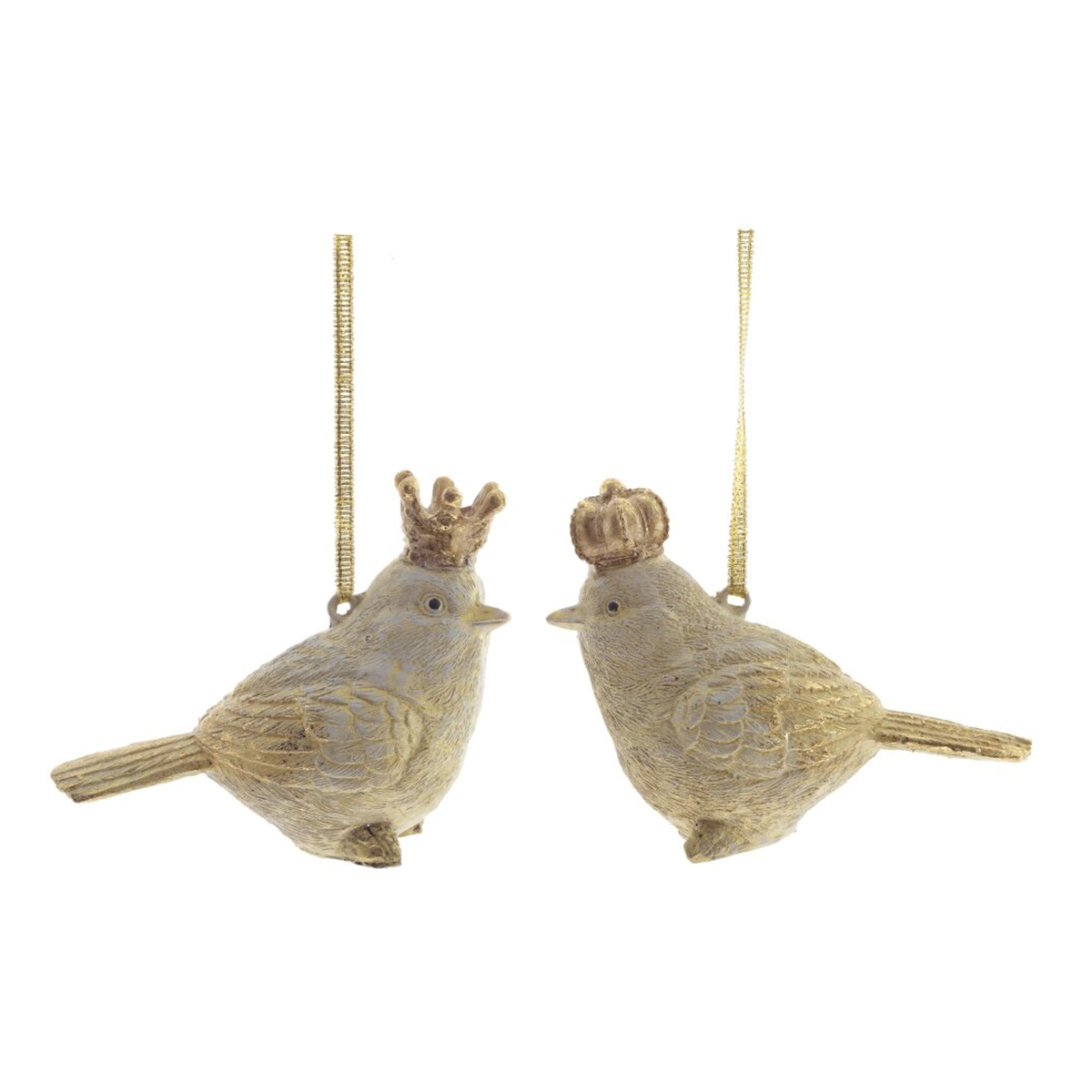 Елочная игрушка в виде Птицы с золотой короной - это невероятно красивое и эффектное украшение, которое обязательно привлечет внимание гостей вашего дома на новогоднюю ночь. Золотой цвет создает удивительный сияющей эффект под елочными огнями. Представлено в двух вариантах.