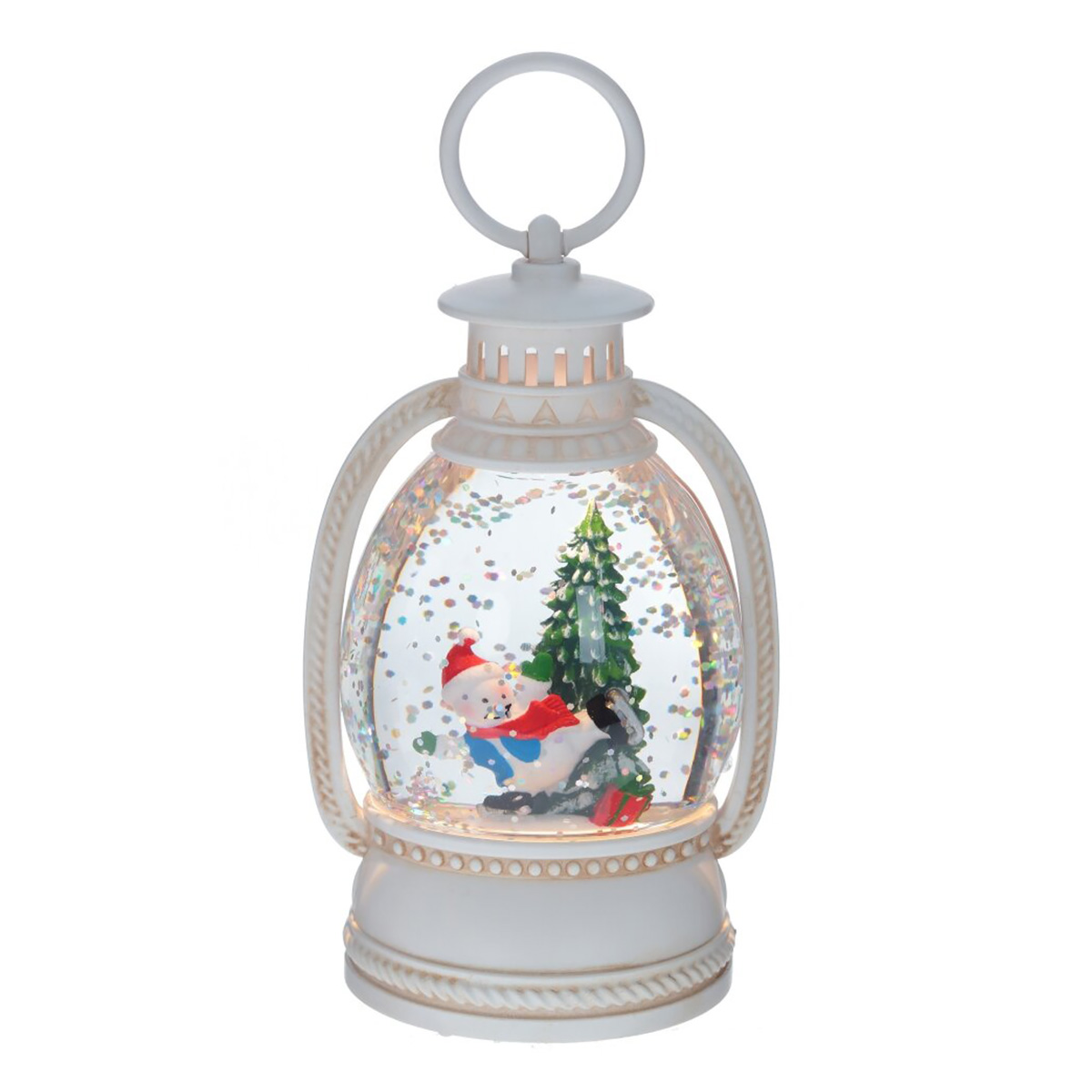 Изделие в виде Фонаря - замечательное праздничное украшение, которое хочется долго рассматривать и держать в руках. При включении поднимается искусственный снег и шар внутри словно оживает. Безупречная форма, изысканный дизайн, качественное исполнение. Этот уникальный подарок приносит с собой уют и теплые воспоминания о детстве. Отлично подойдет взрослым и порадует малышей. Работает от двух батареек ААА [не прилагаются]. Внимание: при длительном нахождении в минусовой температуре возможно образование льда, который сместит фигурки и повредит изделие. Наличие воздушной прослойки внутри является технической необходимостью производства.