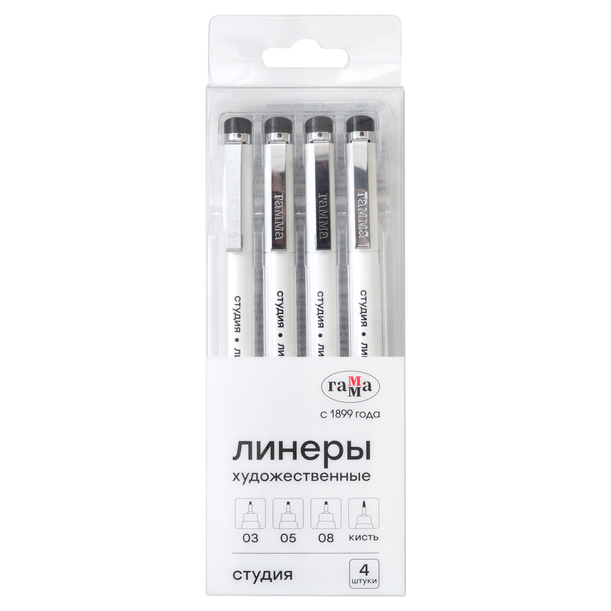 Линеры «ГАММА» серии «Студия» - профессиональные художественные линеры предназначены для графики, письма, черчения, рисования. Водостойкие архивные чернила имеют высокий уровень светостойкости. После полного высыхания рисунок не растекается и не размывается водой. Линерами можно работать в смешанных техниках с акварелью, маркерами и акрилом. Корпус выполнен из высококачественного пластика. В наборе четыре линера с диаметром пишущего узла 0,3/0,5/0,8/1,0 мм. Колпачки пронумерованы в соответствии с диаметром пишущего узла. На корпусе также указана ширина линии. Металлический клип позволит закрепить маркер на альбоме или скетчбуке. Набор упакован в пластиковый бокс с европодвесом. Линеры «ГАММА» имеют 9 видов наконечников, с помощью них можно создавать различные работы. • Цвет чернил: чёрный; • Диаметр пишущего узла: 0,3/0,5/0,8/1,0 мм; • Тип упаковки: пластиковый бокс; • Количество в наборе: 4.