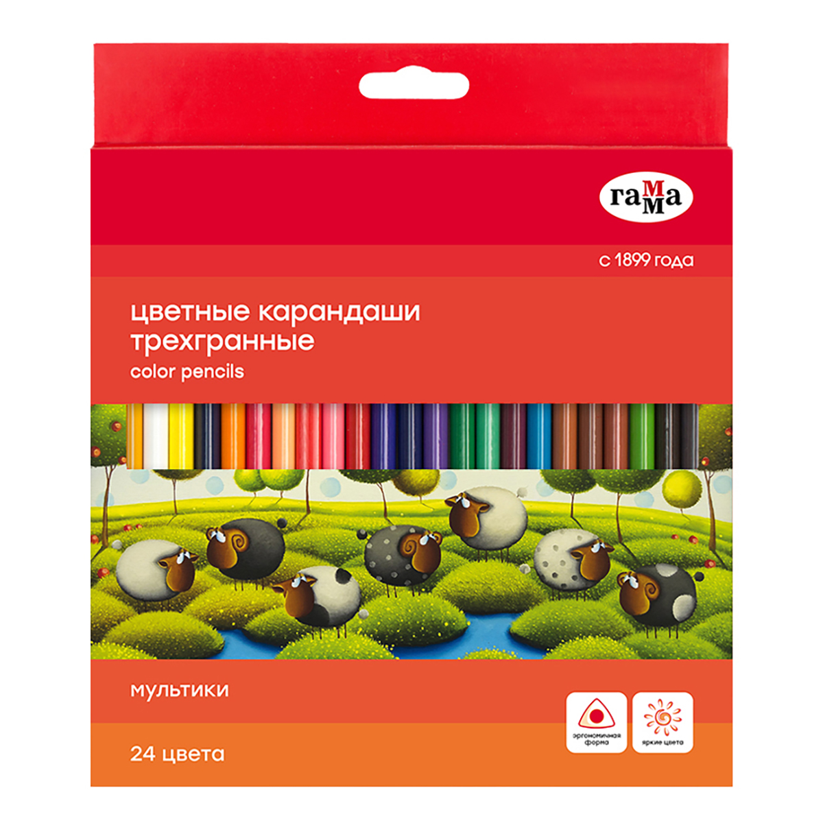 Цветные карандаши ГАММА серии «Мультики» выполнены в эргономичном трёхгранном корпусе, который подскажет ребенку, как правильно держать карандаш во время творческих занятий. В наборе 36 цветов. Диаметр грифеля – 3,3 мм. Проклеенный ударопрочный грифель не крошится во время заточки и не ломается даже после падения. Корпус карандаша длиной 174 мм изготовлен из дерева. Специальная обработка древесины позволяет легко заточить карандаш без зазубрин и заноз. За яркость и высокую укрывистость отвечают качественные пигменты в составе. Ребенку не придется сильно давить на карандаш – рисунок получится ярким и равномерно закрашенным. Упаковка – картонная коробка с европодвесом. • Количество цветов: 36; • Форма корпуса: трёхгранная; • Заточка грифеля: да; • Количество карандашей: 36