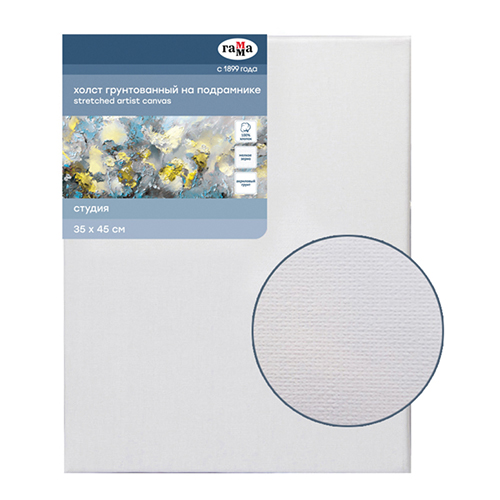 Хлопковый холст на подрамнике ГАММА серии «Студия», грунтованный, подойдёт для живописи масляными, акриловыми, темперными и гуашевыми красками. Основа – натуральное полотно, 100% хлопок, мелкое зерно. Холст прямоугольной формы плотностью 280 г/м2, размер – 35*45 см. Холст покрыт акриловым грунтом, а подрамник выполнен из сосны. Изготовлен без использования кислот. Подходит студентам художественных школ и училищ, начинающим и профессиональным художникам. • плотность 280 г/м?; • мелкое зерно; • 100% хлопок; • акриловый трёхслойный грунт; • подрамник из сосны