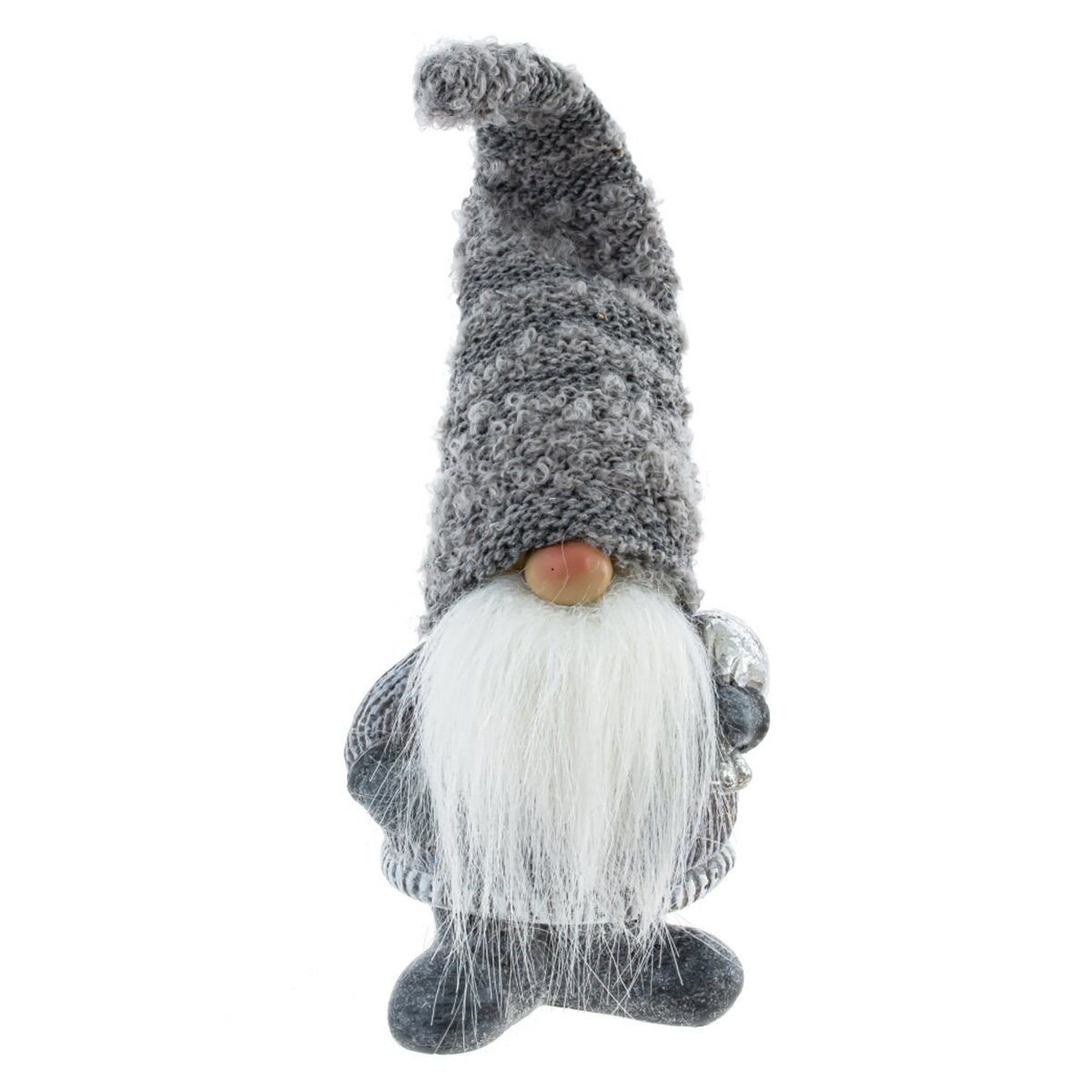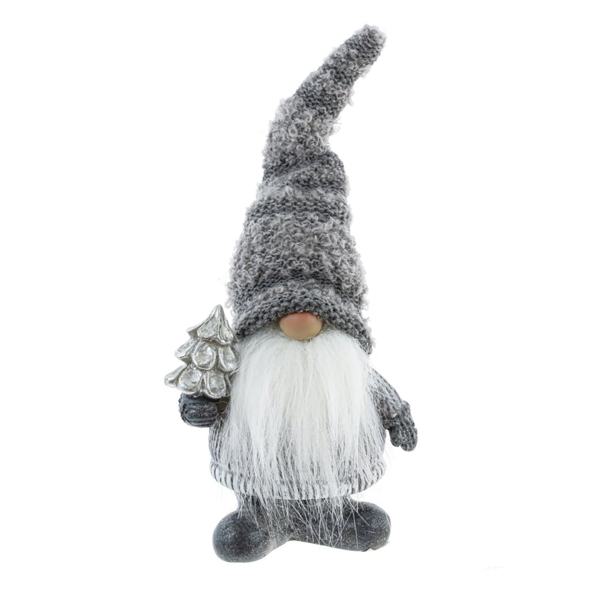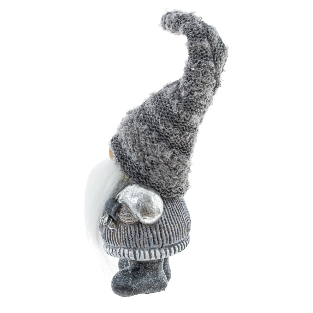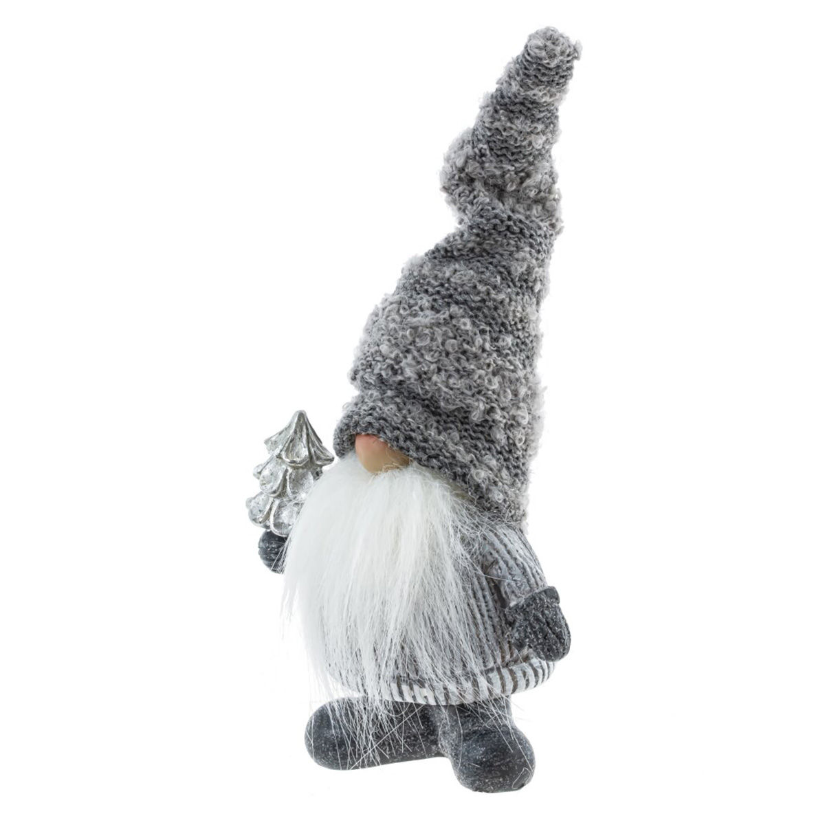 Декоративная фигурка "Гном" - идеальное решение для создания новогоднего уюта в вашем доме! Этот обаятельный гном изготовлен из качественных полимерных материалов в сером цвете. Его роскошная белая борода выполнена из мягкого искусственного меха. что добавляет ему особый шарм. На голове у гнома вязанный серый колпак. который можно регулировать по высоте от 20 до 10 см благодаря проволочной основе внутри. Фигурка доступна в двух вариантах: с серебряной елочкой в руке или с серебряным мешочком. Украсьте свой дом этим прекрасным гномом и создайте атмосферу сказочной праздничной радости!