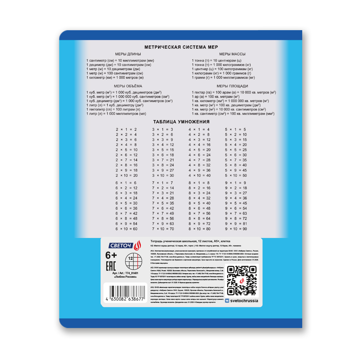 Тетрадь А5 формата, 12 листов идеально подойдет для школьников любого года обучения, используется для письма шариковыми, гелевыми и капиллярными ручками. Внутренний блок изготовлен из качественной офсетной бумаги плотностью 65 г/кв. м, 100% белизны. Обложка из мелованного картона плотностью 190 г/кв. м. Линовка - клетка, красные поля. Вид скрепления - скоба.