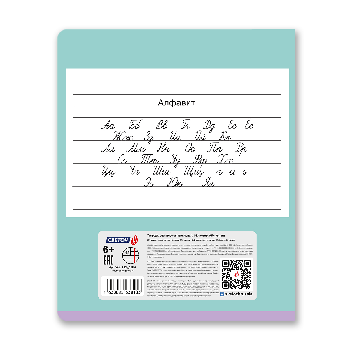 Тетрадь А5 формата, 18 листов идеально подойдет для школьников любого года обучения, используется для письма шариковыми, гелевыми и капиллярными ручками. Внутренний блок изготовлен из качественной офсетной бумаги плотностью 65 г/кв. м, 100% белизны.